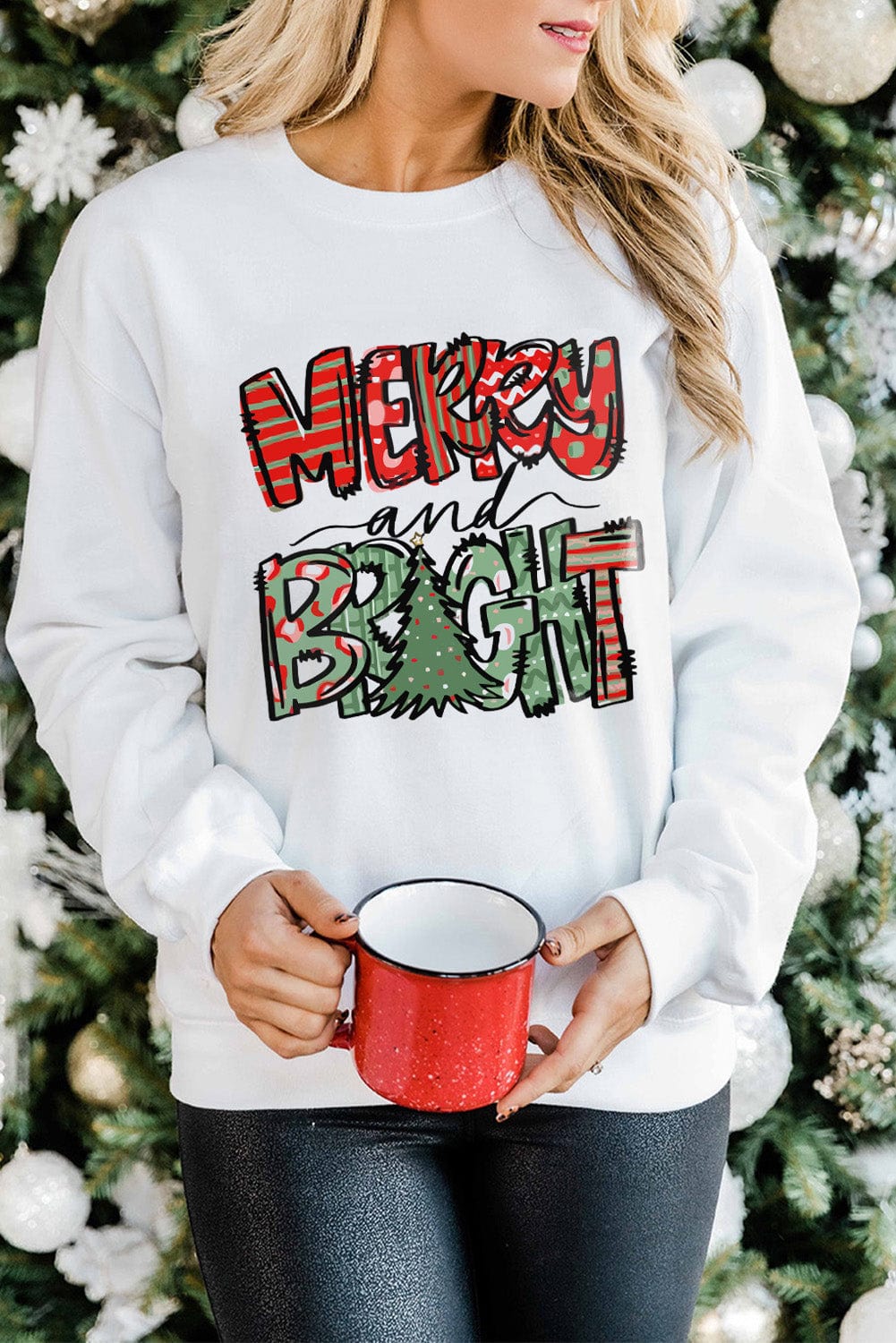 Merry Bright White Christmas Letter Print Graphic Sweater