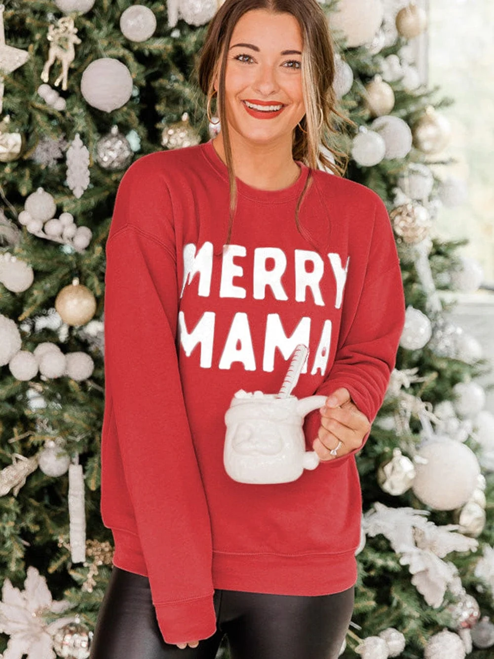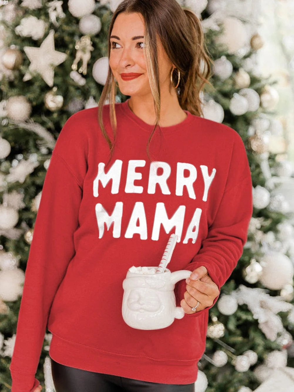 Vibrant Crimson MOTHERLY JOY Graphic Print Long Sleeve Sweater
