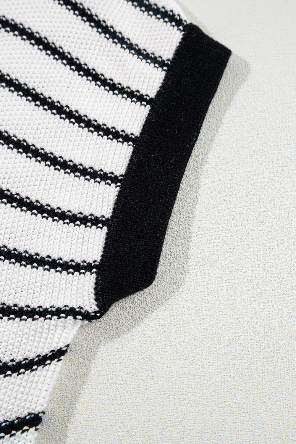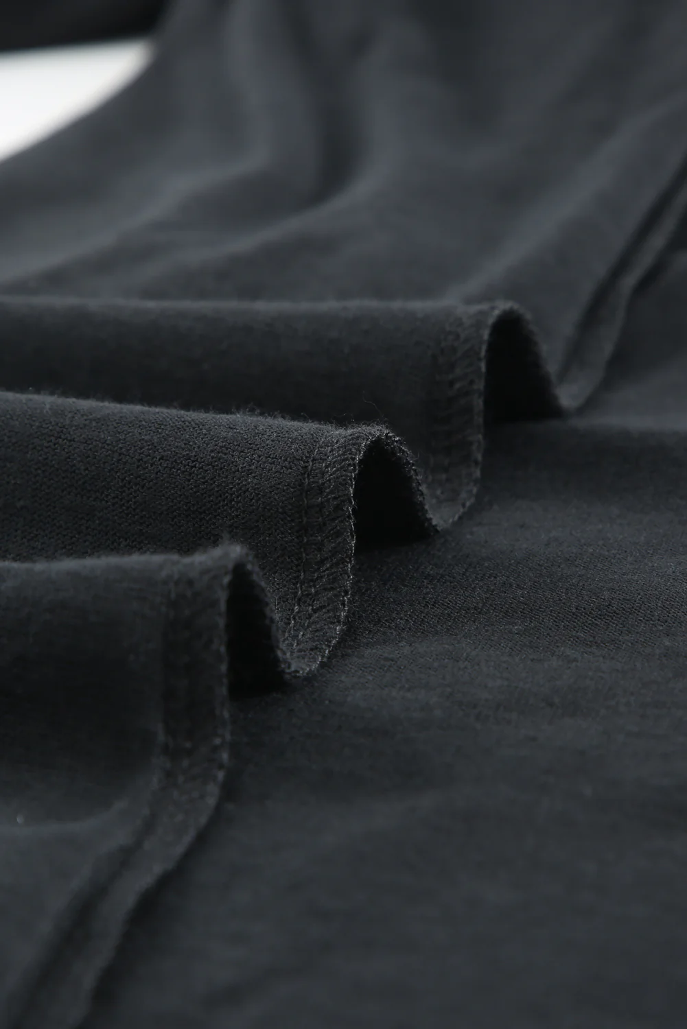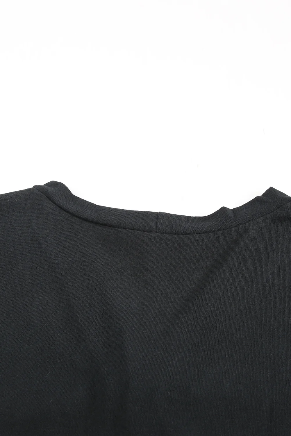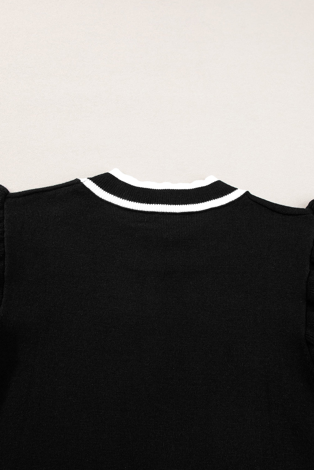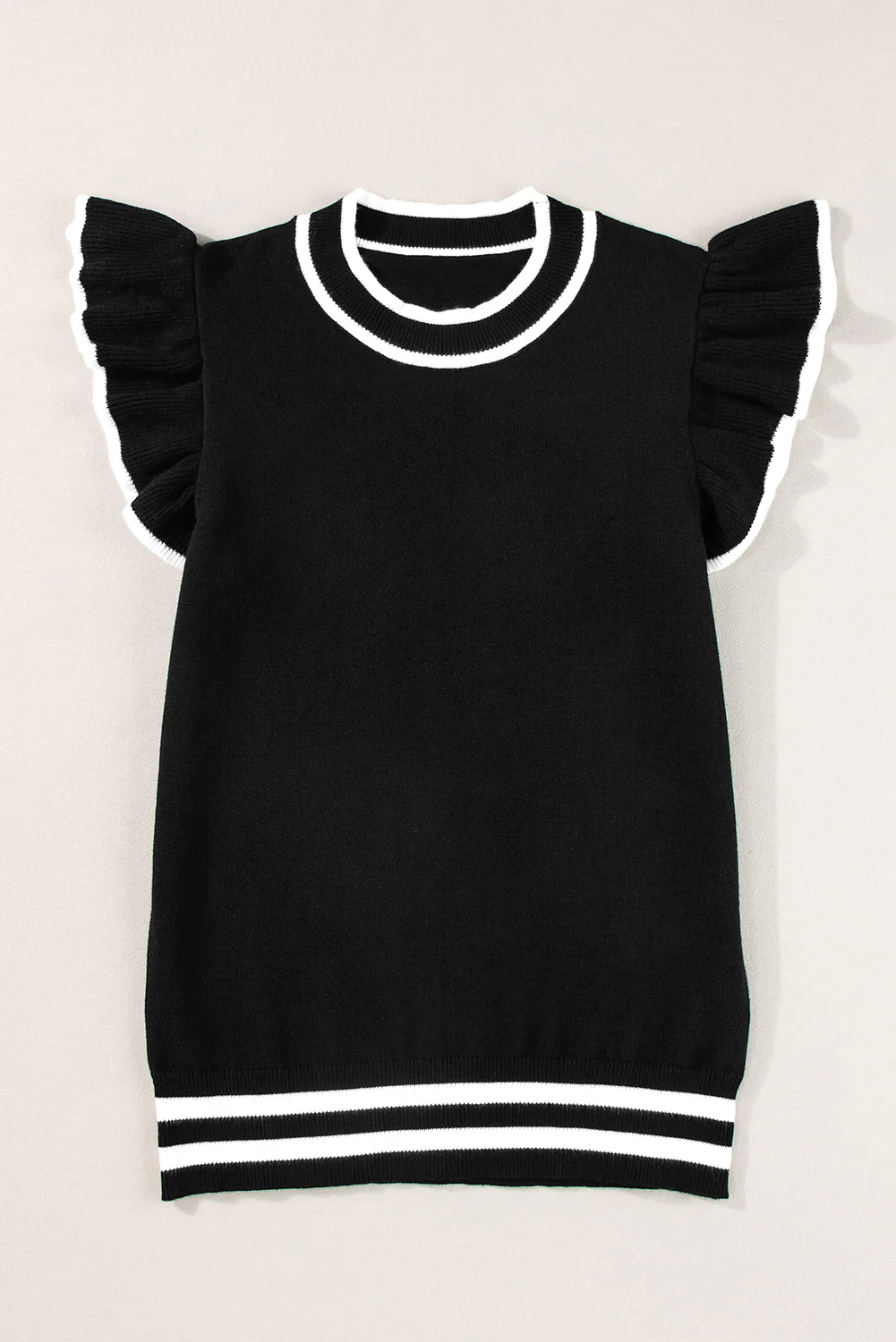 Black Edge Piping Ruffled Sleeve Round Neck Knit T Shirt
