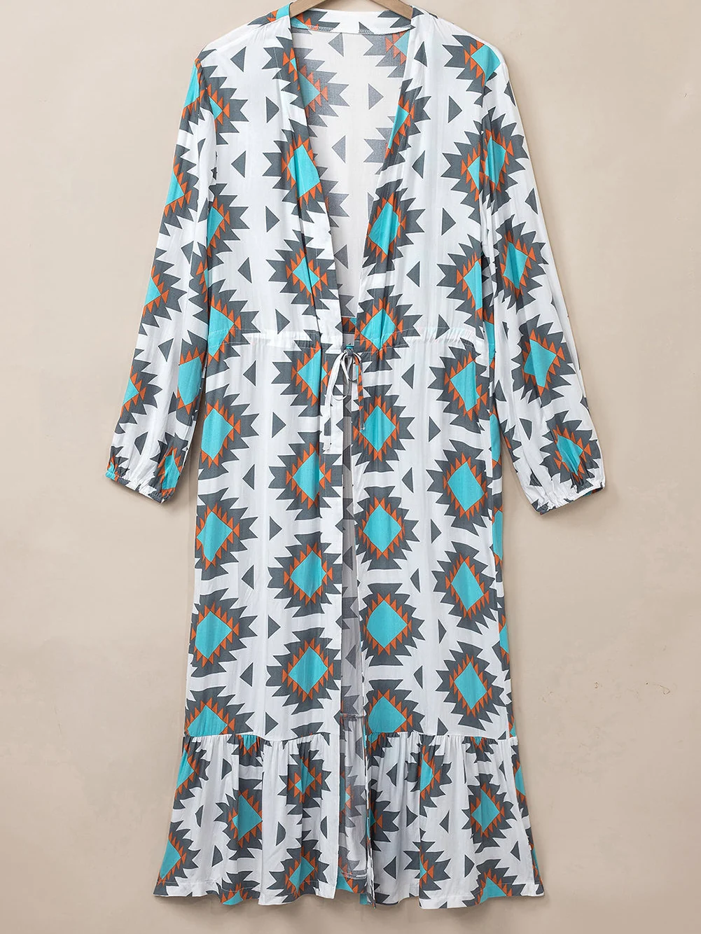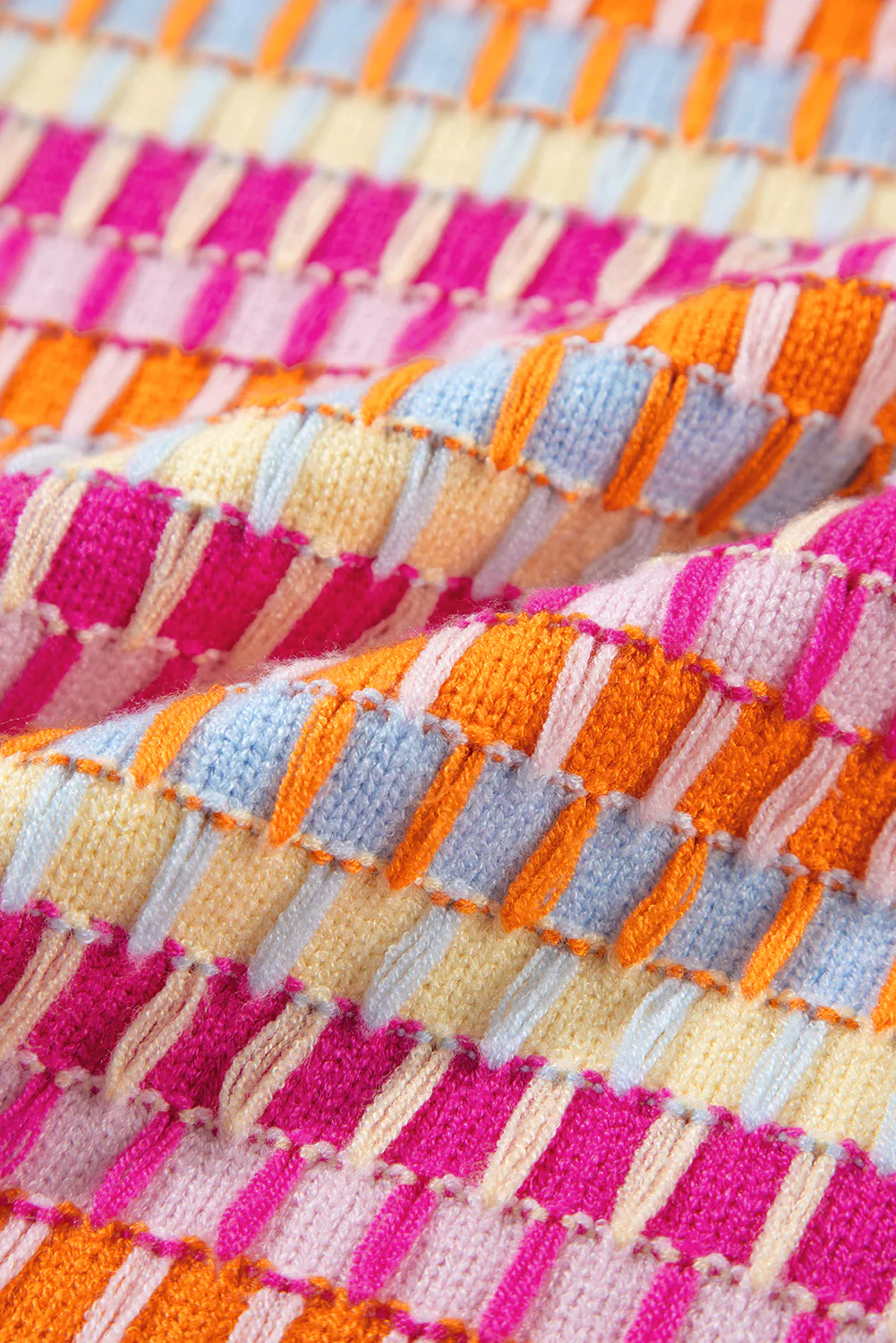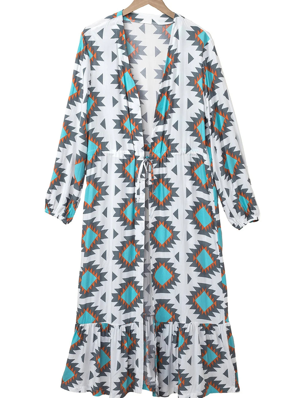 White Pointelle Knit Bracelet Sleeve Open Cardigan