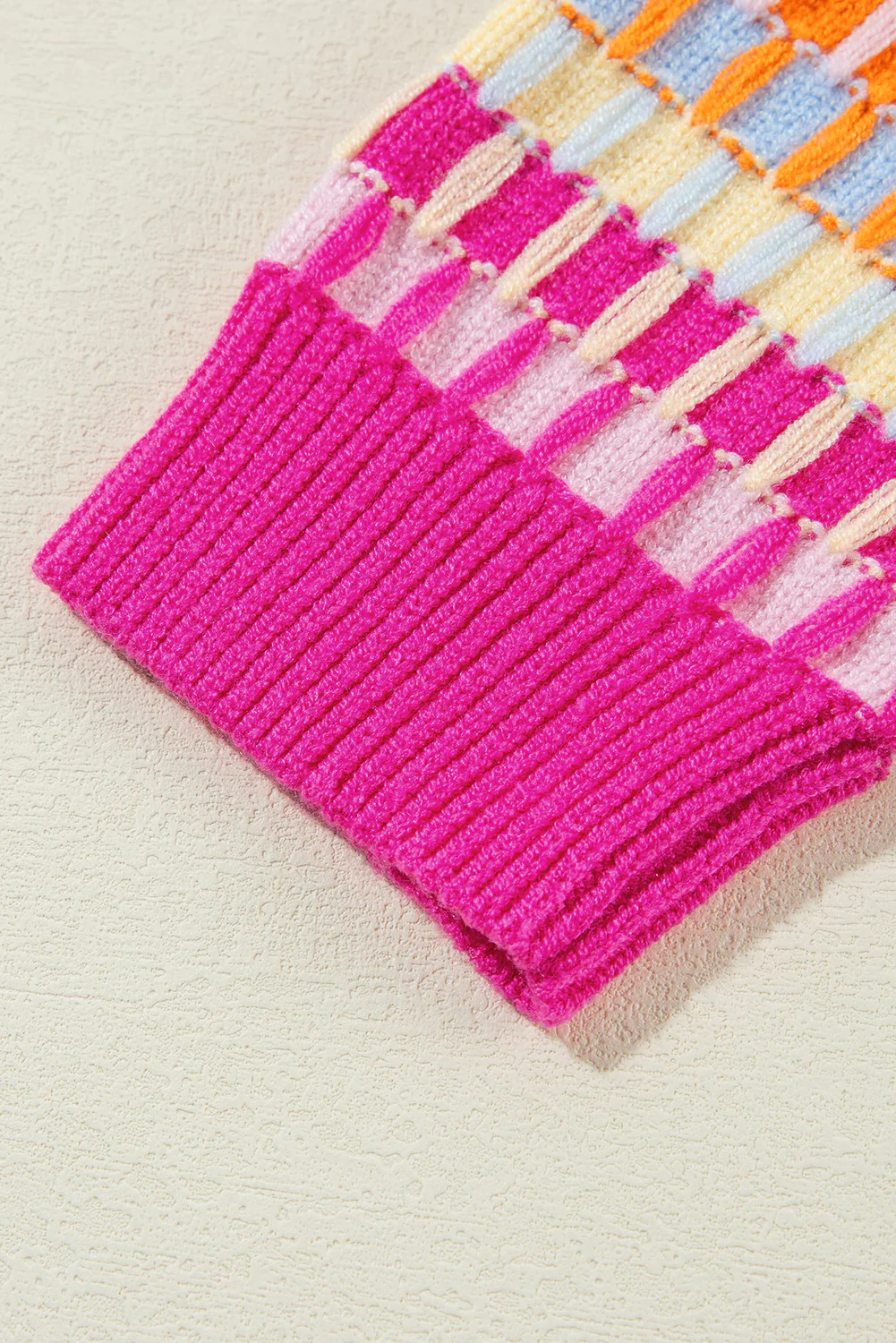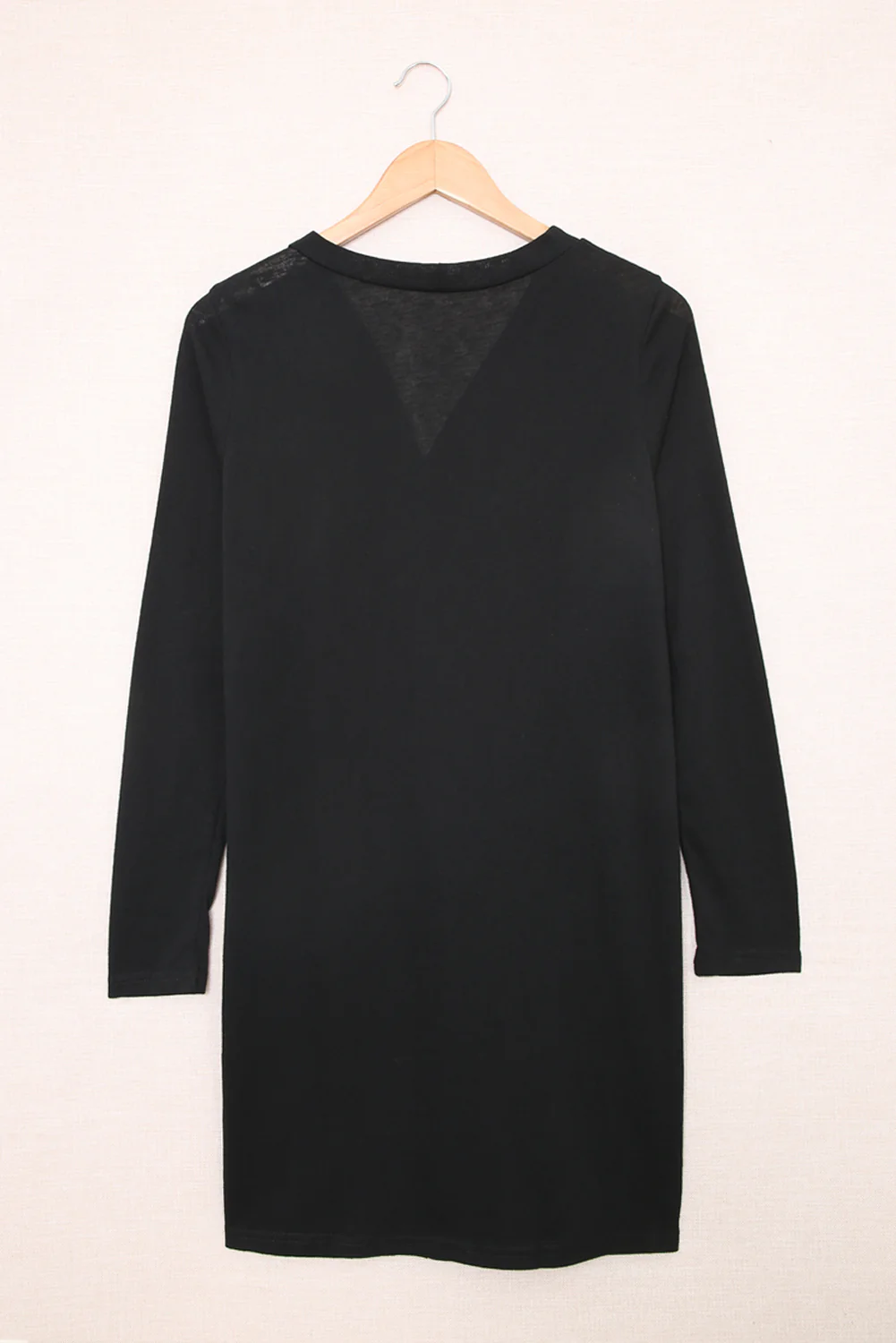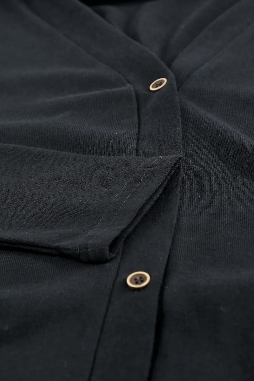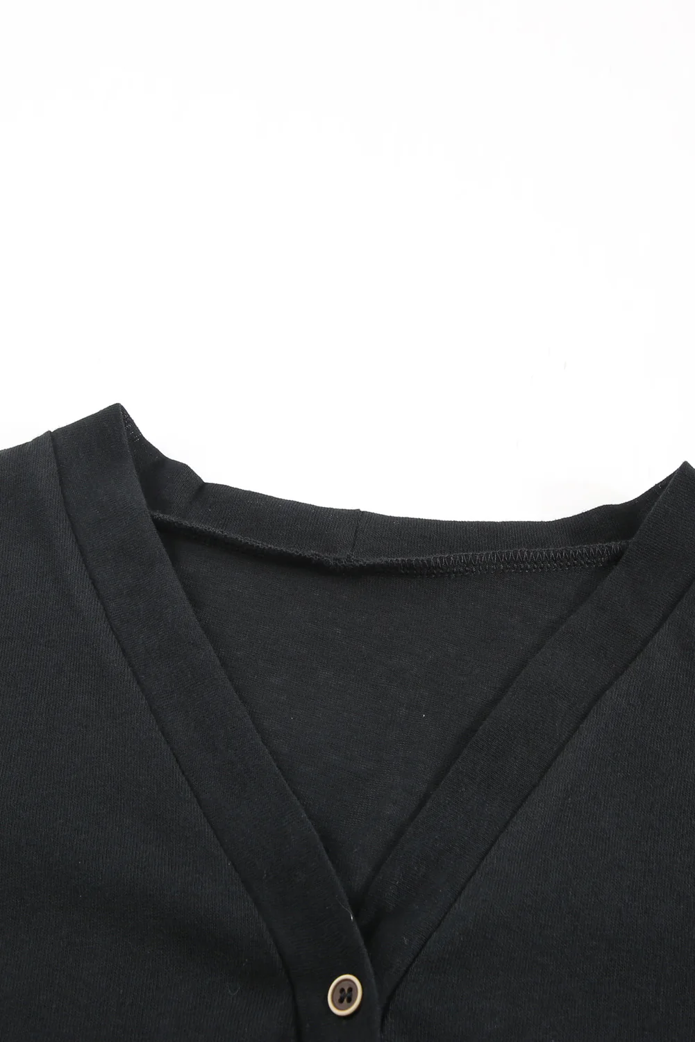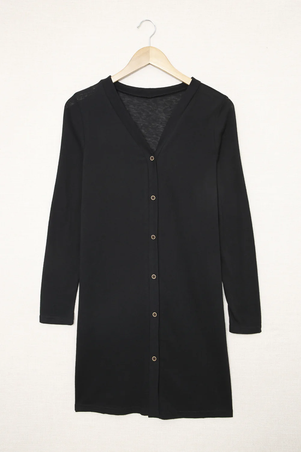Black Plus Size Knitted Hollow out Button up Cardigan