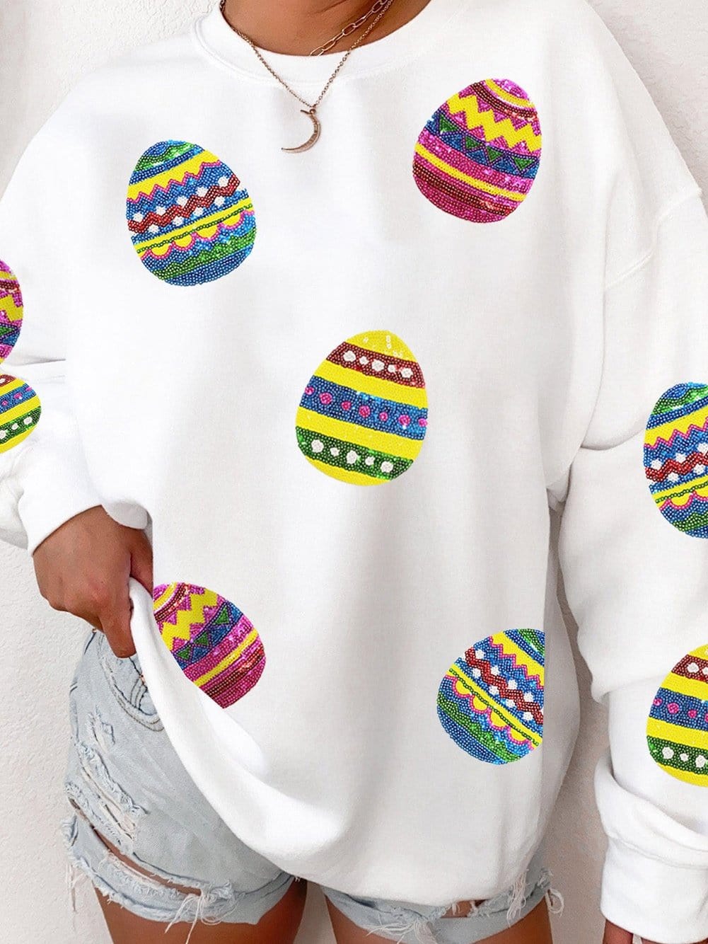 Eggstra Cheer Beige Sequin Embellished Sweater