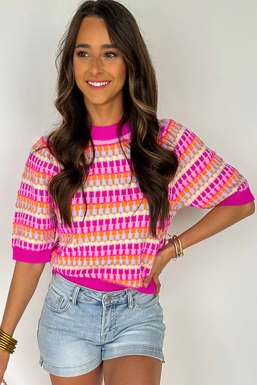 Women Dolman Short Sleeve Batwing Tunic Half Sleeve Oversized Casual Loose V Neck Knitted Sweater T Shirt