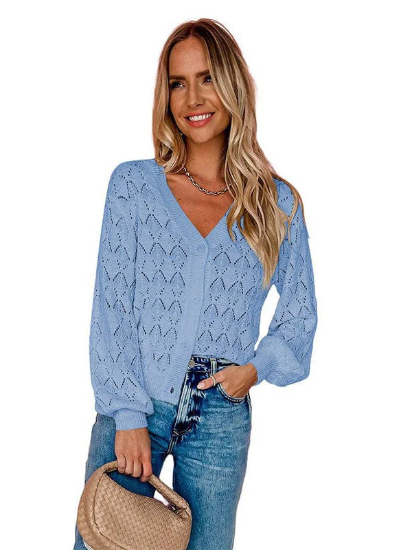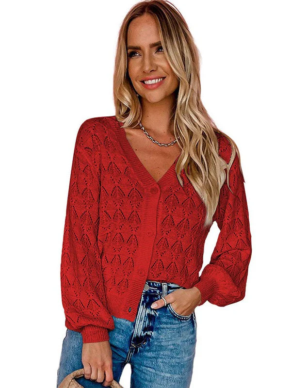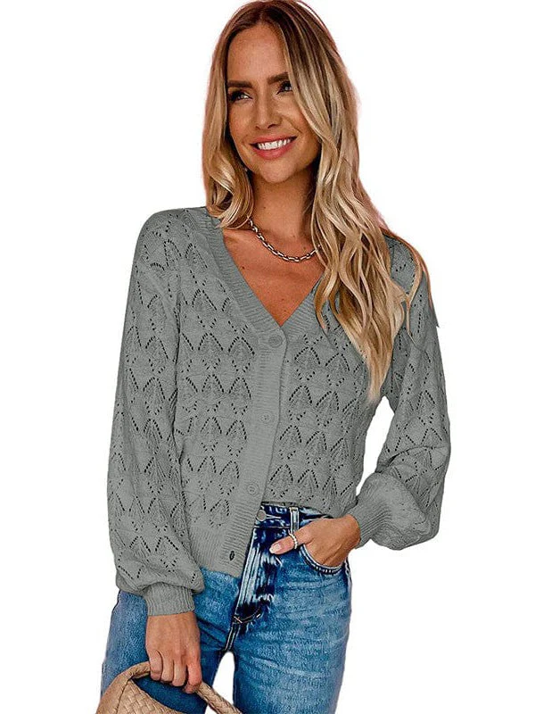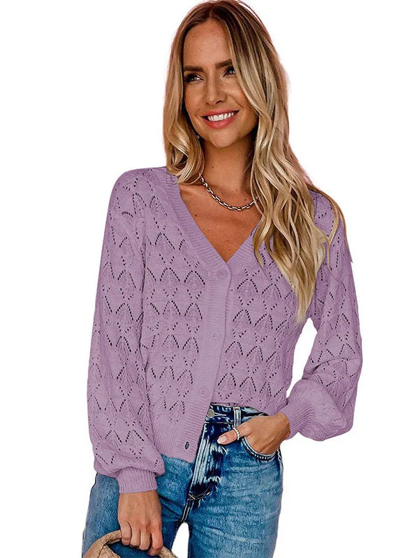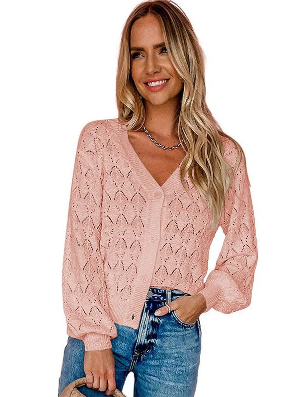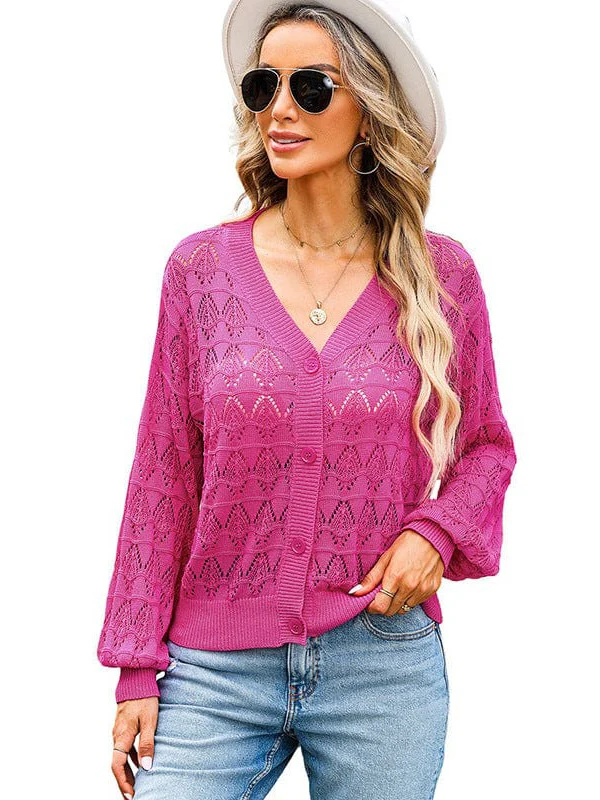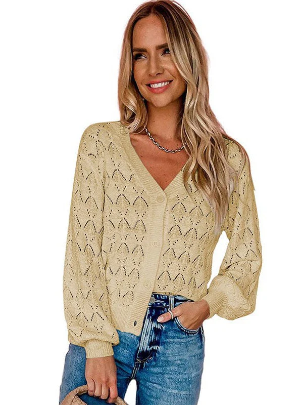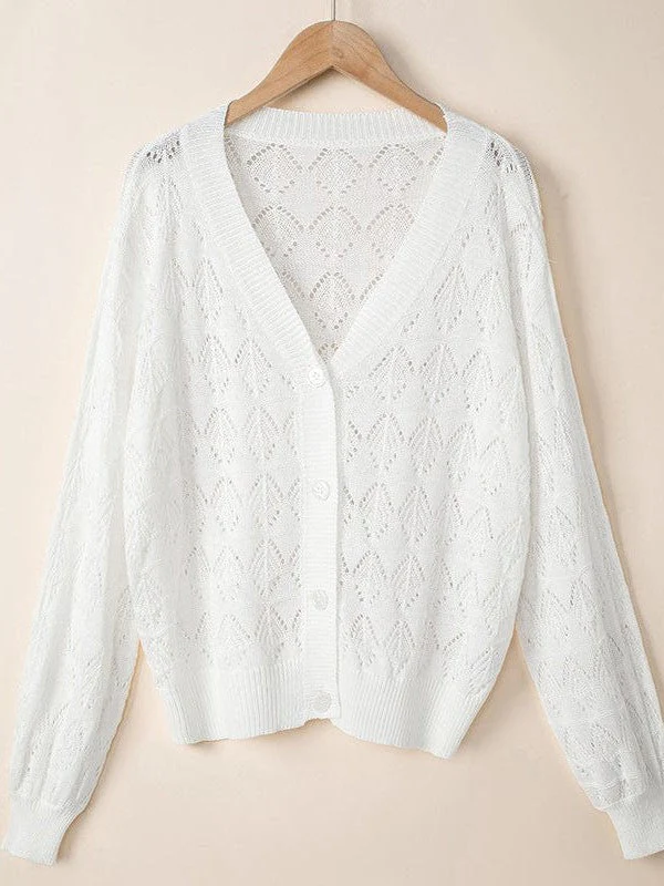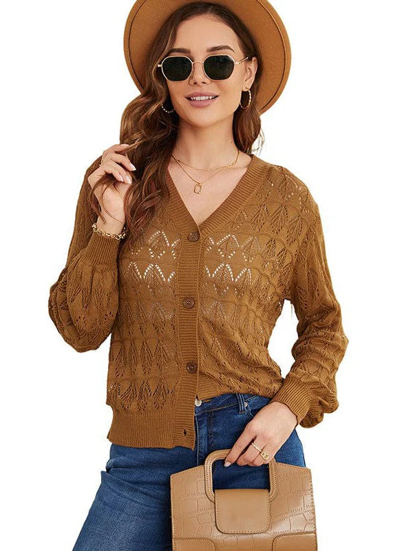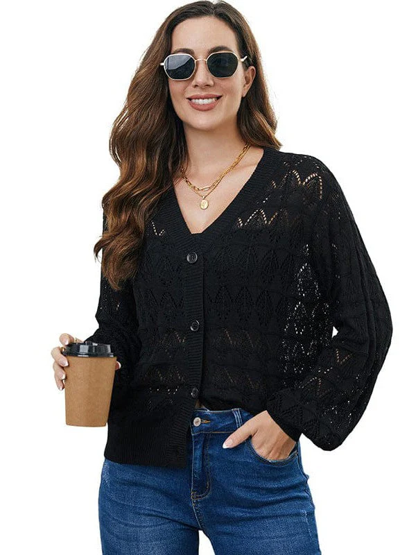 Ethnic Style Knitted Mesh Hollow Women'S Cardigan Sweater With Acrylic-Cotton Blend