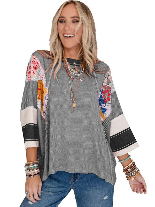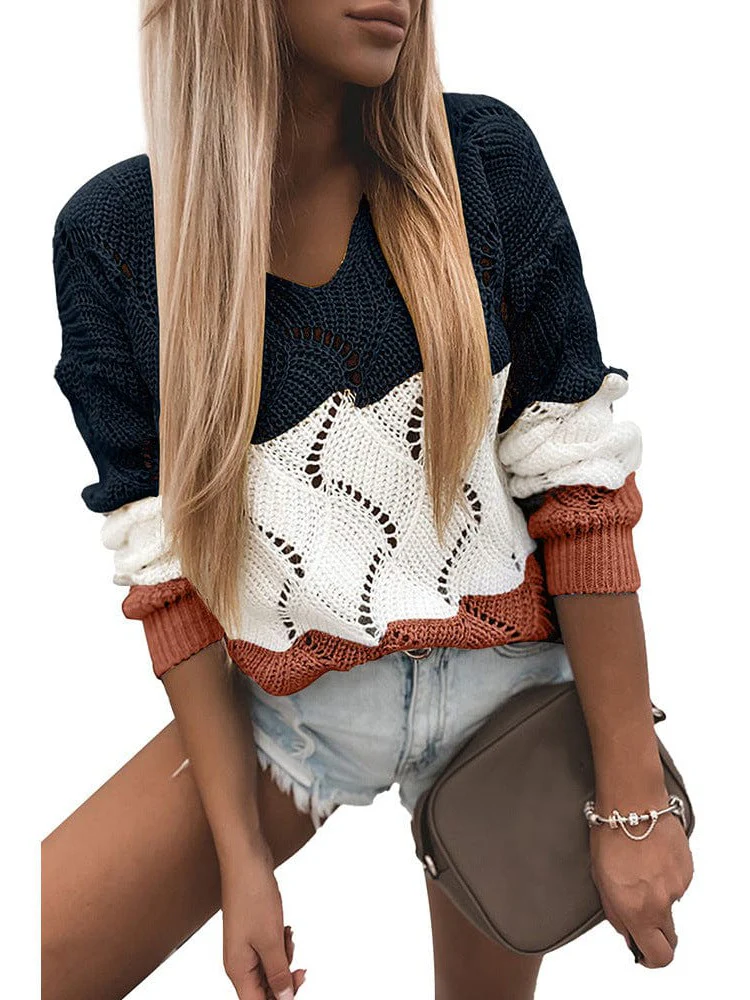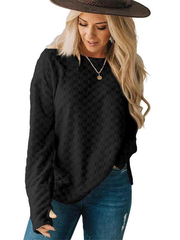 Simple Style Loose Fit Long Sleeve Pullover Top For Women