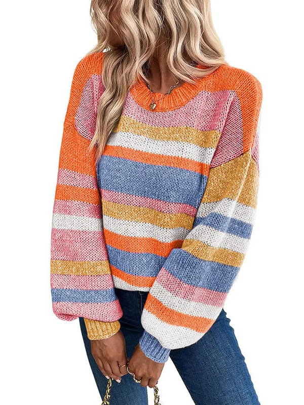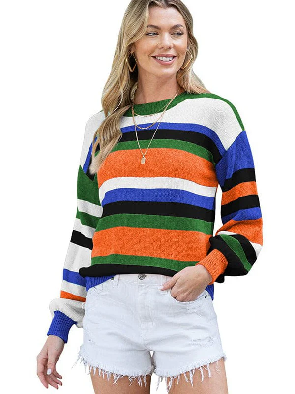 Stylish Striped Pullover With Long Sleeves And Loose Fit
