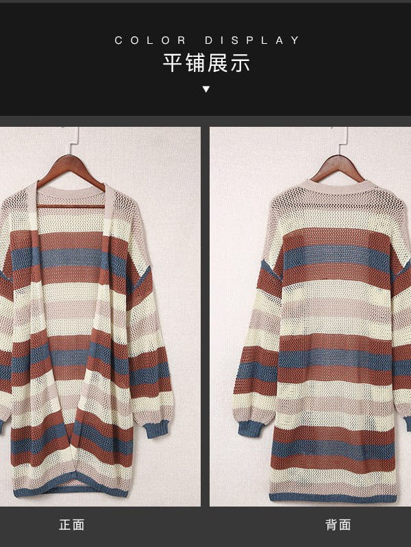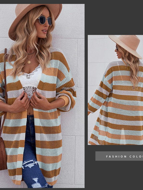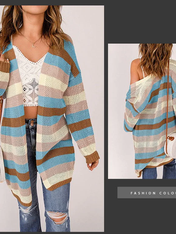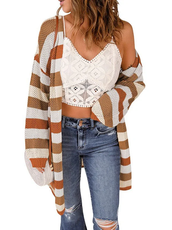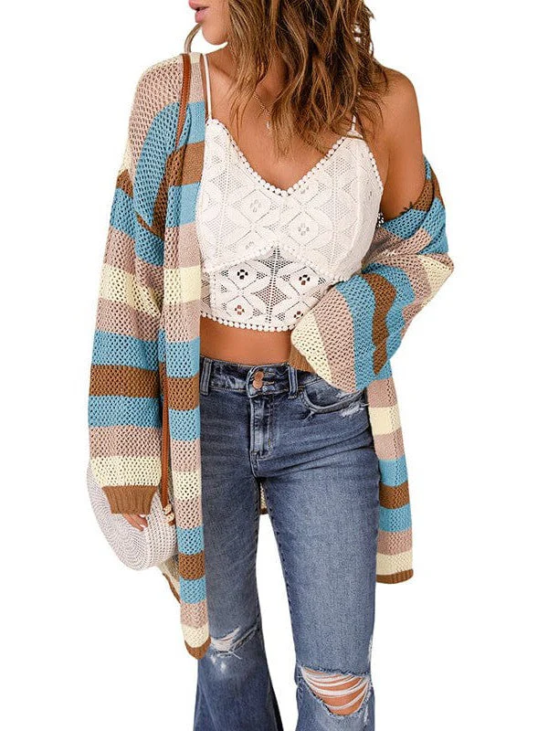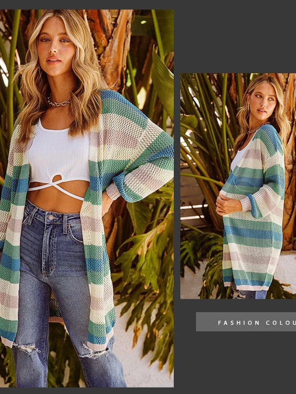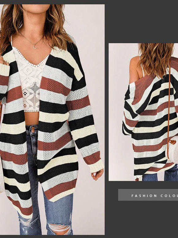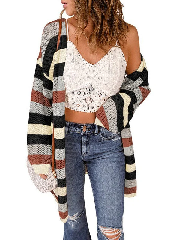 Striped Contrast Color Cardigan Jacket With Long Sleeves For Women