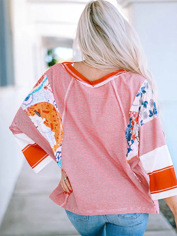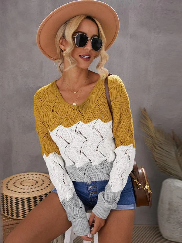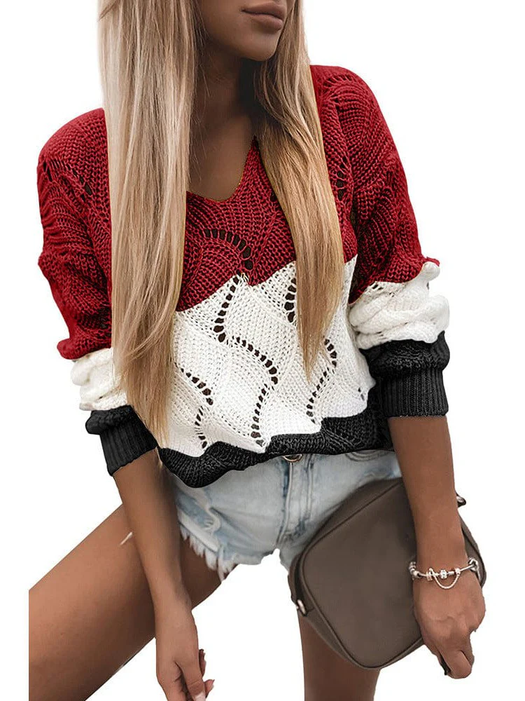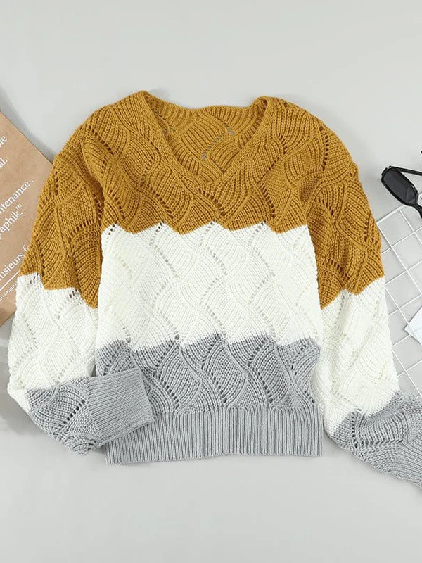 Vibrant V-Neck Striped Women'S Sweater With Loose Fit And Long Sleeves