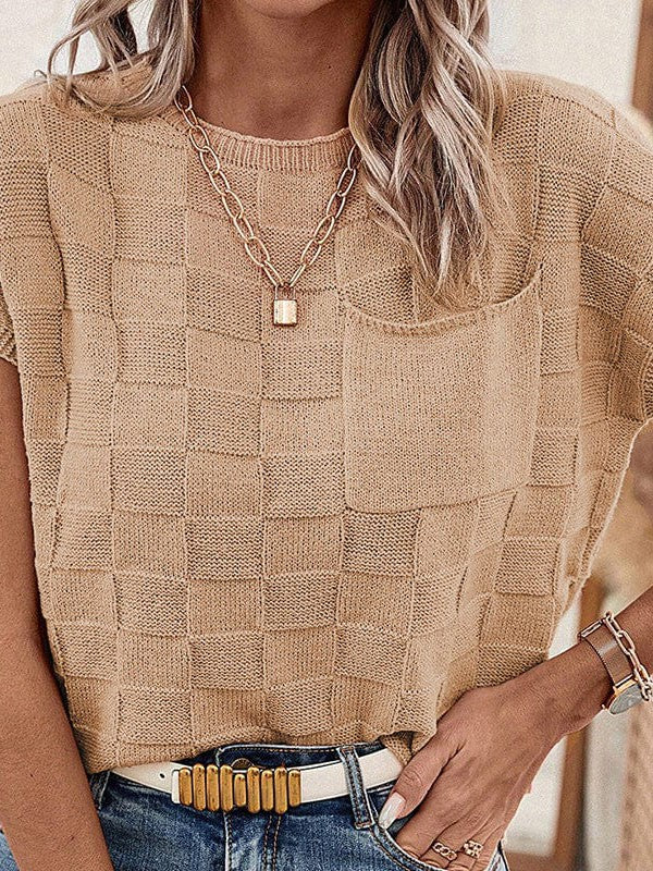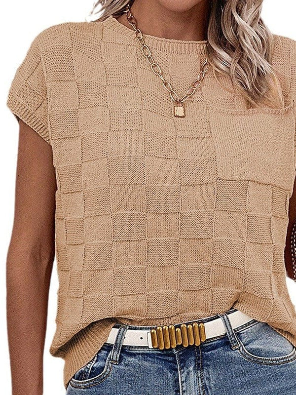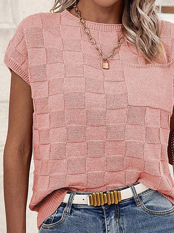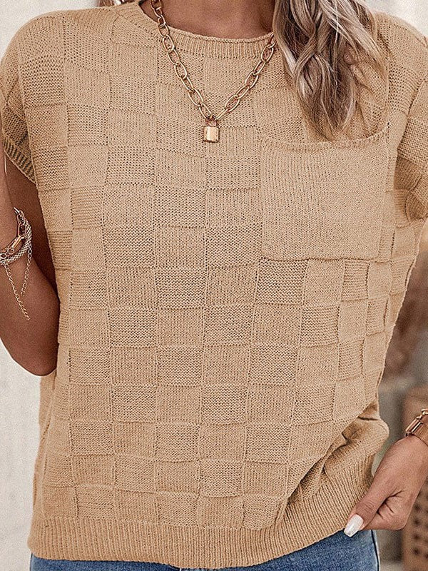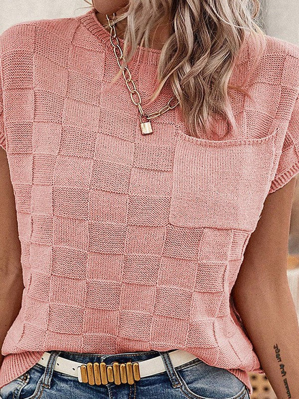 Vogue Wool Vest In Plain Checkerboard Design And Casual Pullover Style For Ladies