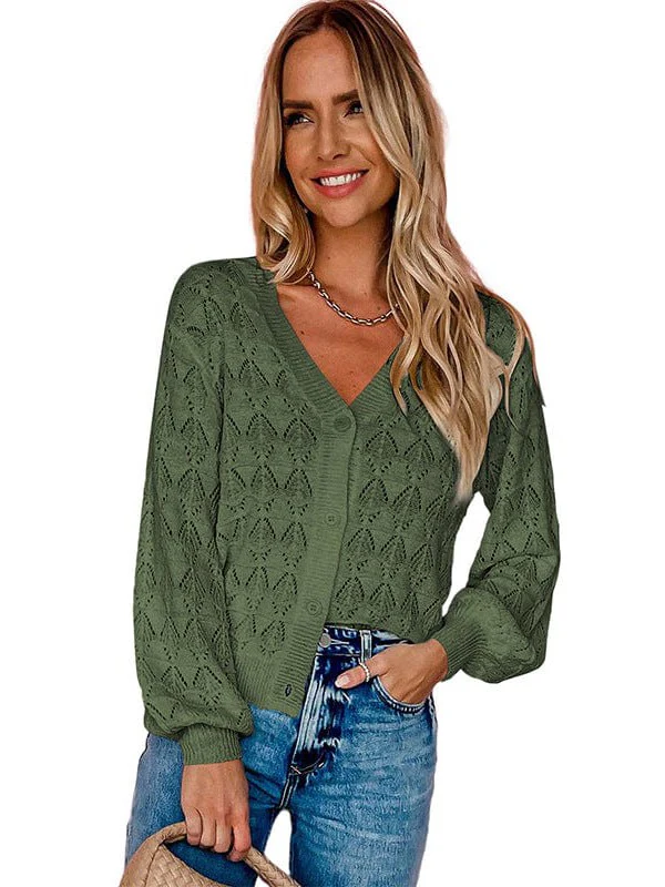 Versatile Loose Shell Pattern Cardigan Sweater Top Jacket For Women'S