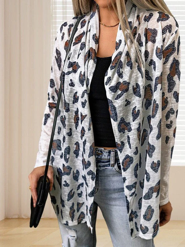 Leopard Print Cardigan Jacket With Loose Fit For Women