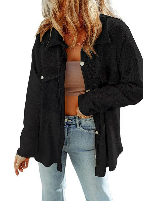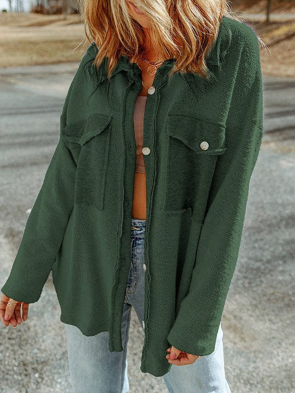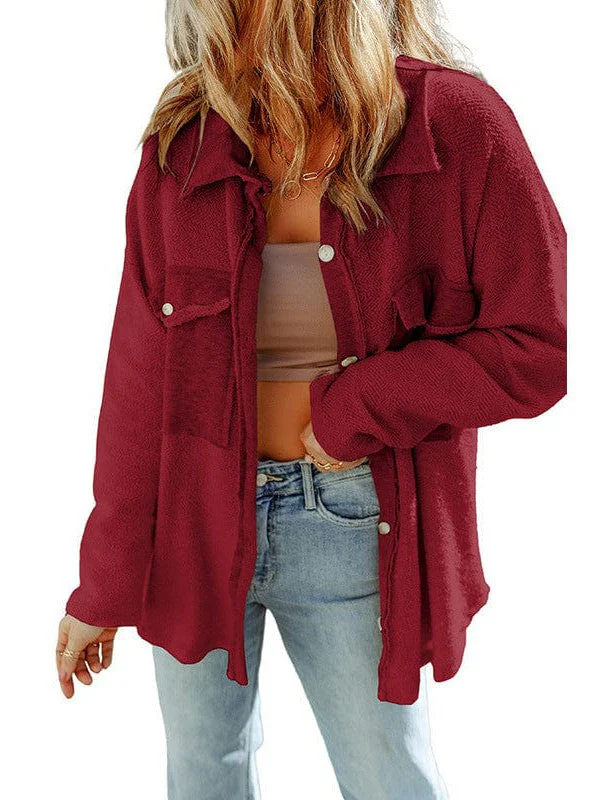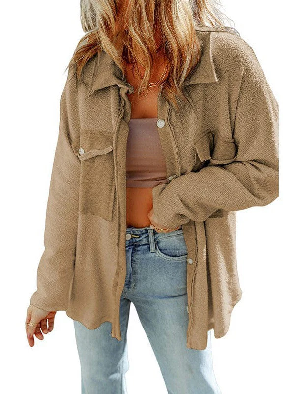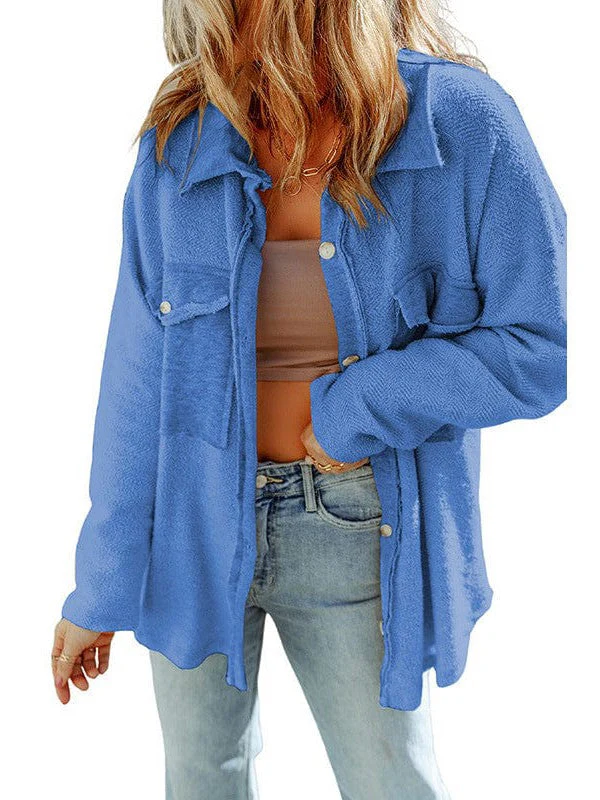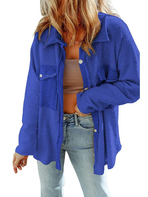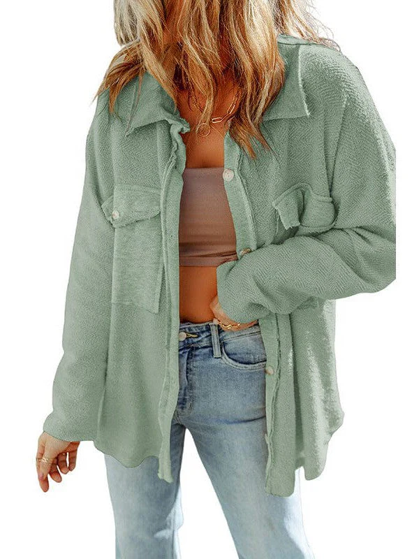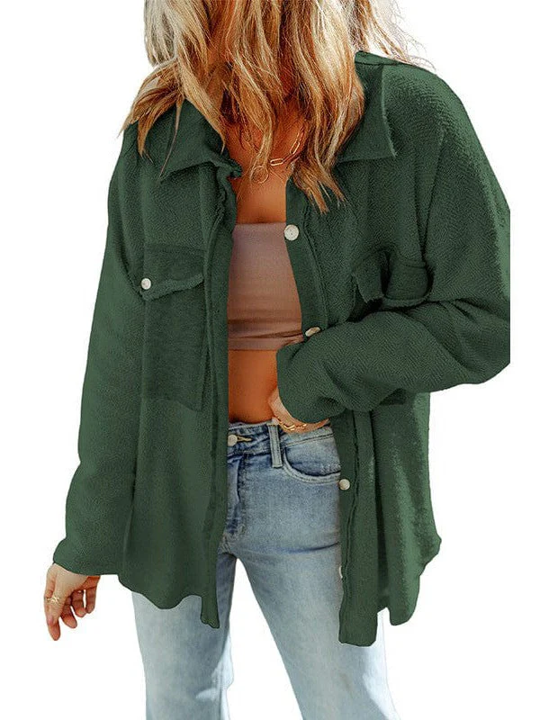 Women'S Versatile Cotton Cardigan Jacket With Long Sleeves In Solid Color