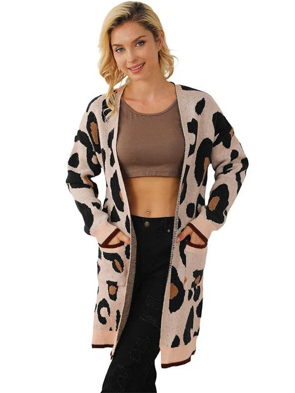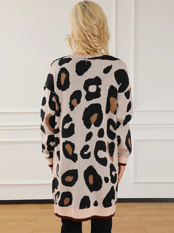 Leopard Print Shawl Cardigan For Women With Long Sleeves