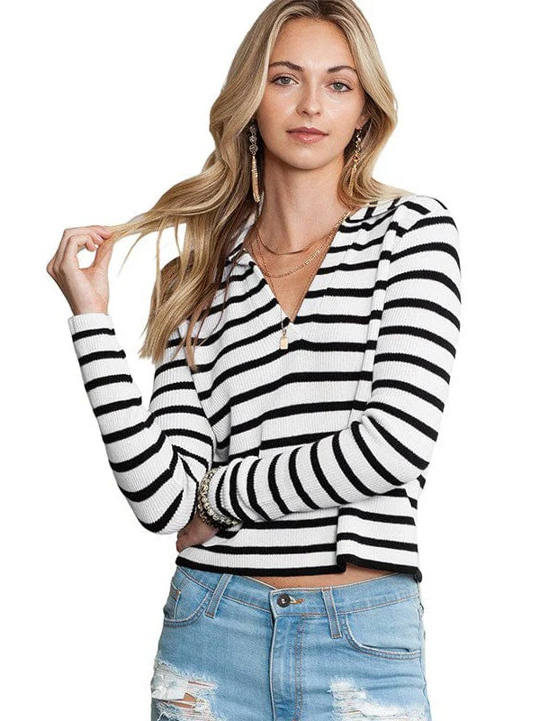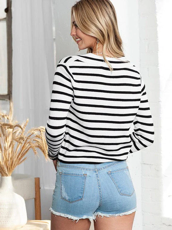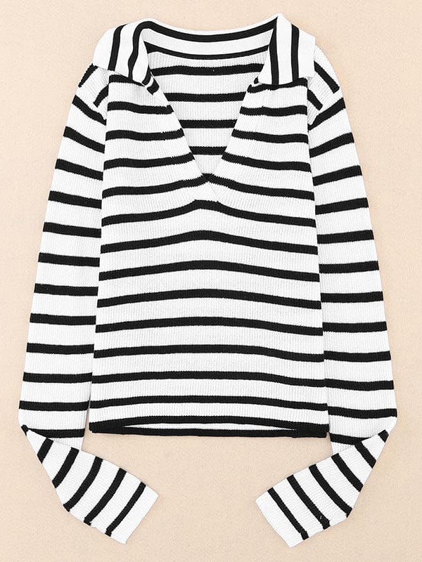 Fashionable Women'S Casual Striped Knit Sweater With Long Sleeves