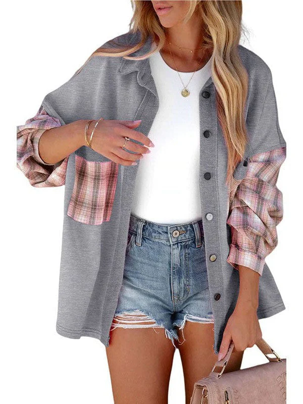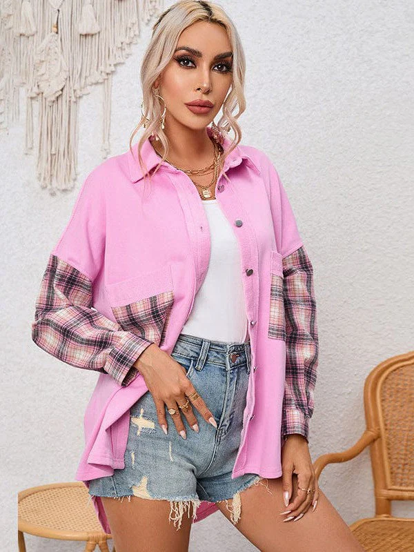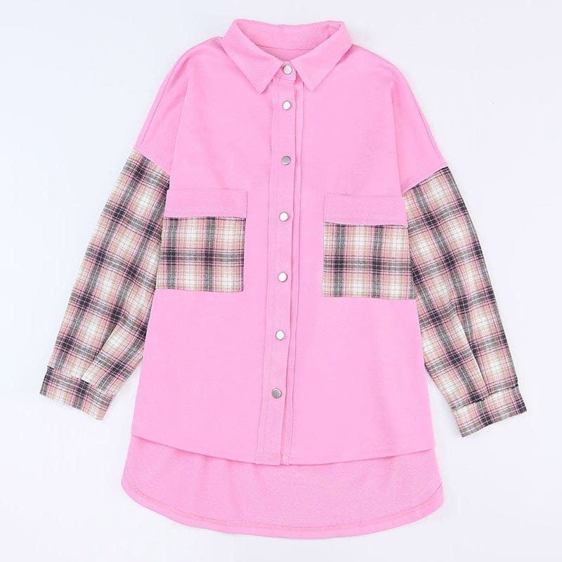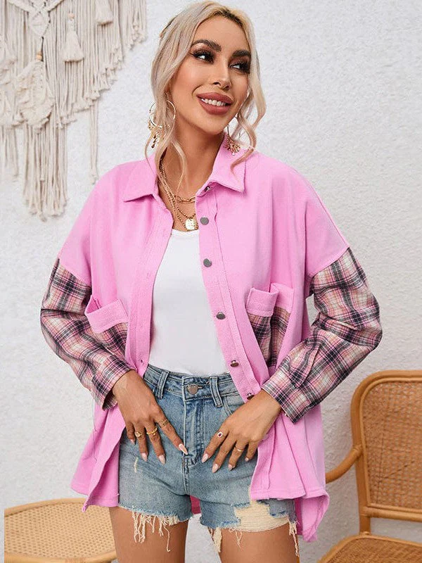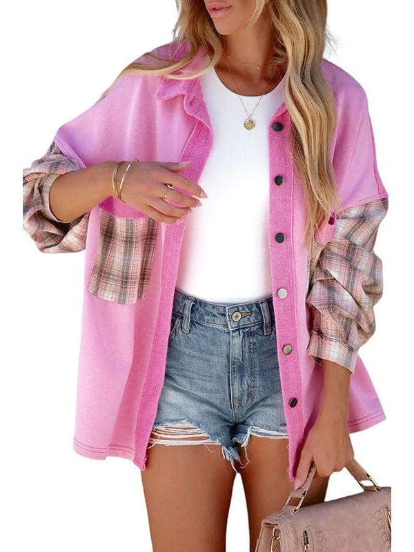 Women'S Rose Red Plaid Cardigan With Buttoned Pockets