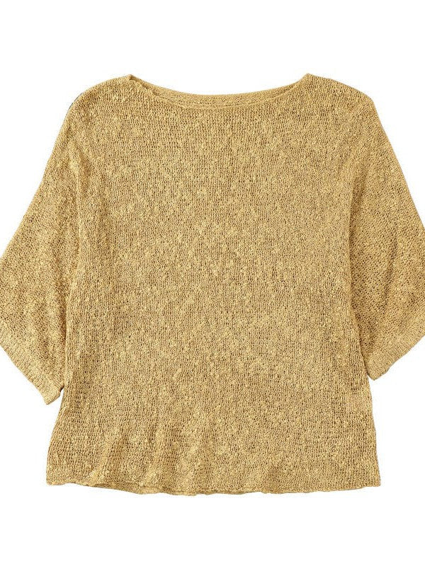 Knitted Ruffled Short Sleeve Pullover Top In Fashionable Solid Colors For Women