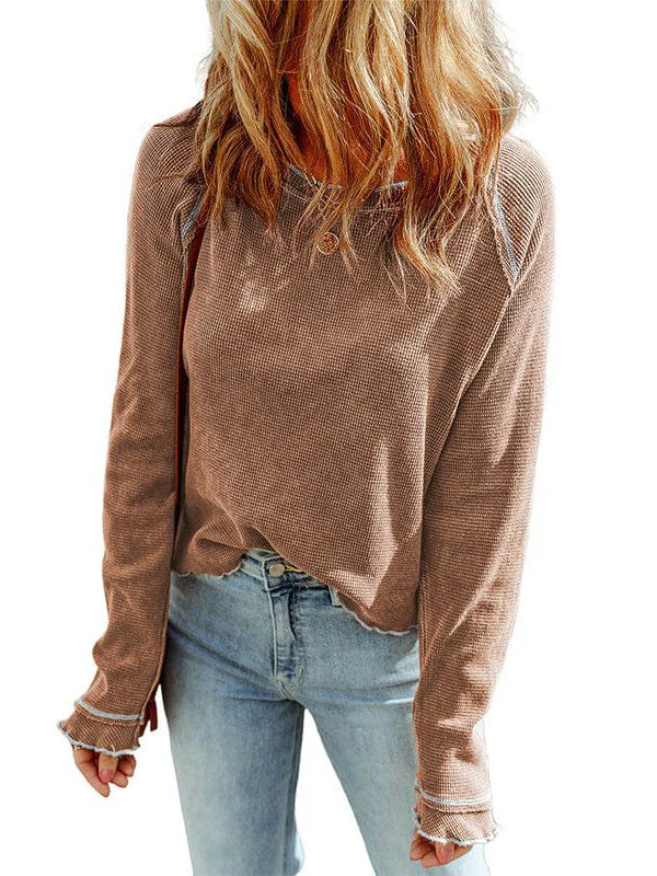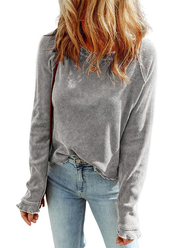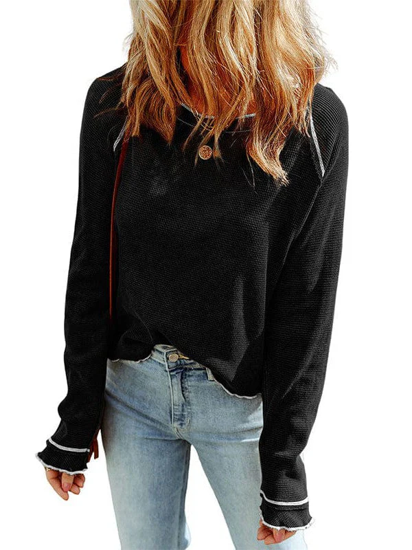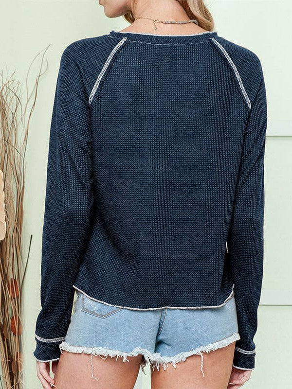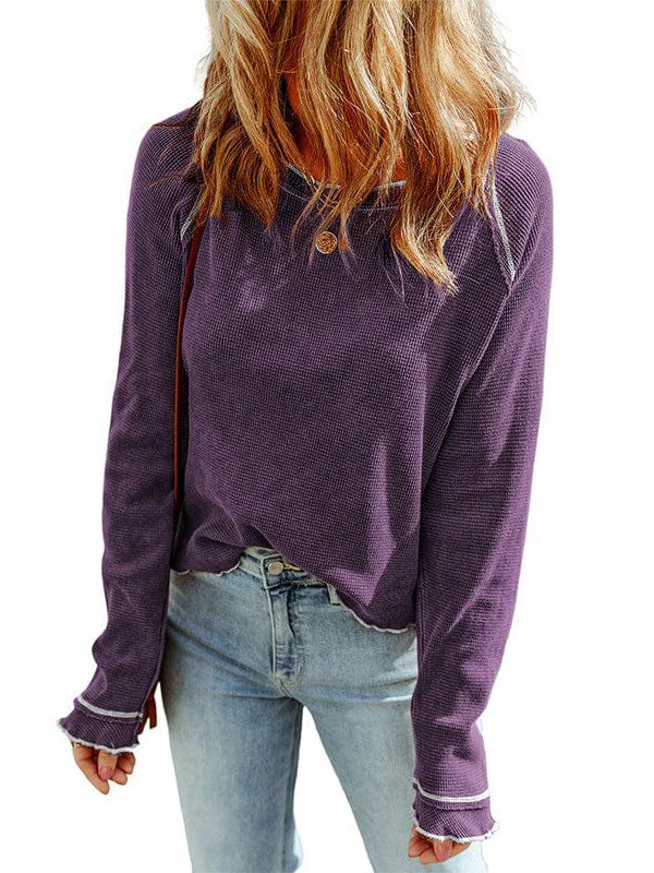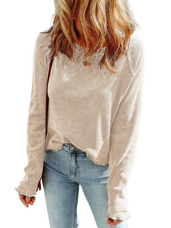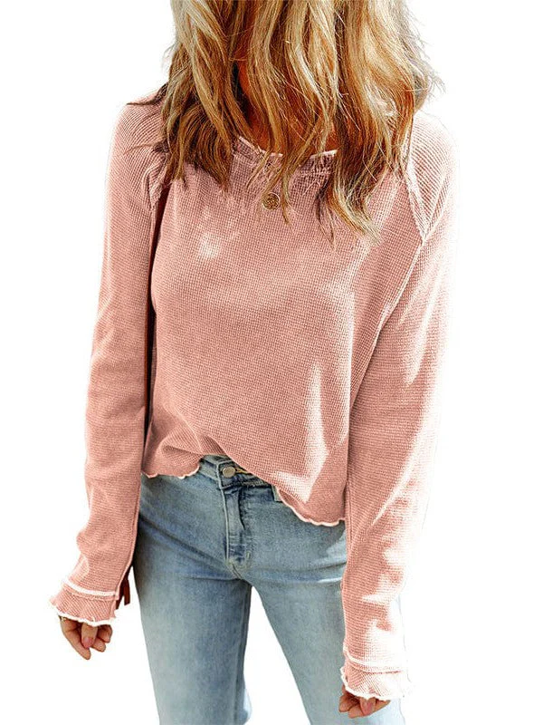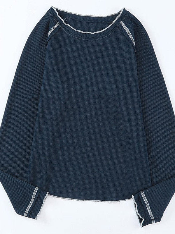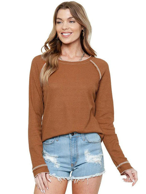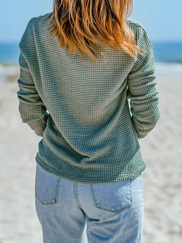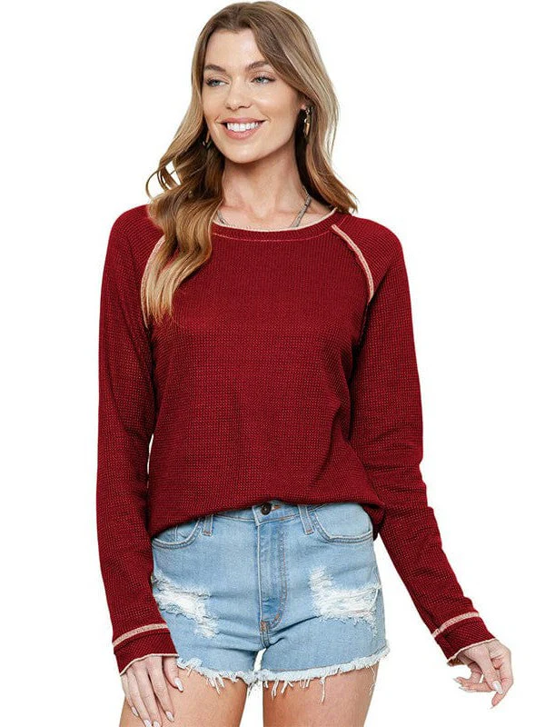 Women'S Cozy Waffle Knit Pullover Sweater - Long Sleeve Round Neck Top
