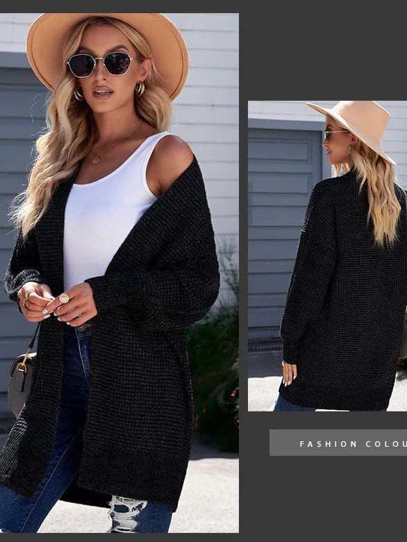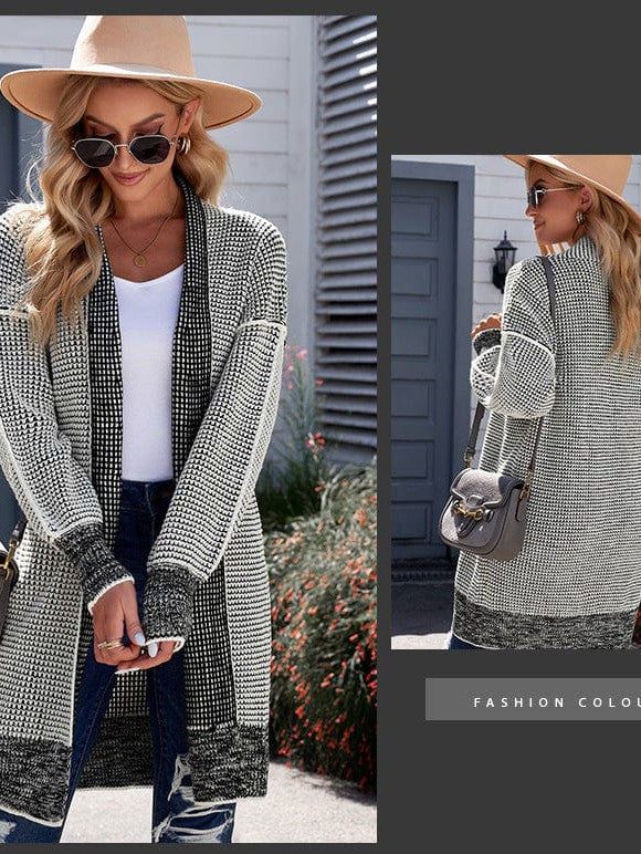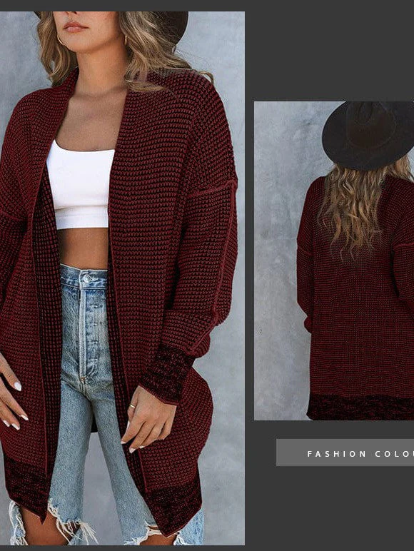 Women'S Fashionable Knit Cardigan Sweater With Mid-Length Cut