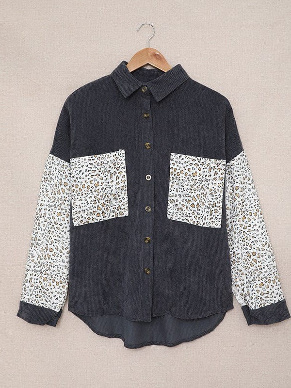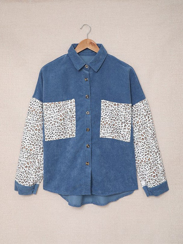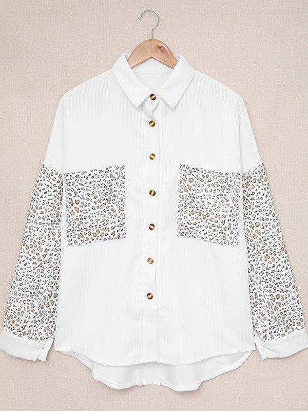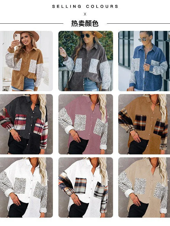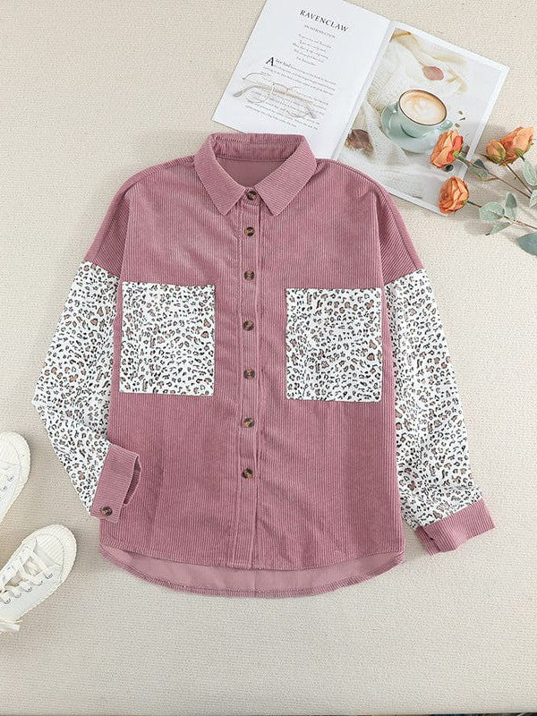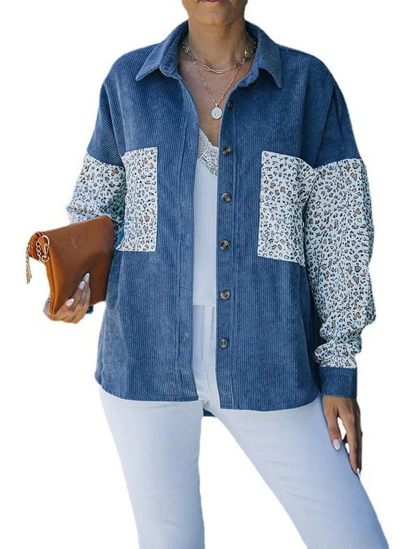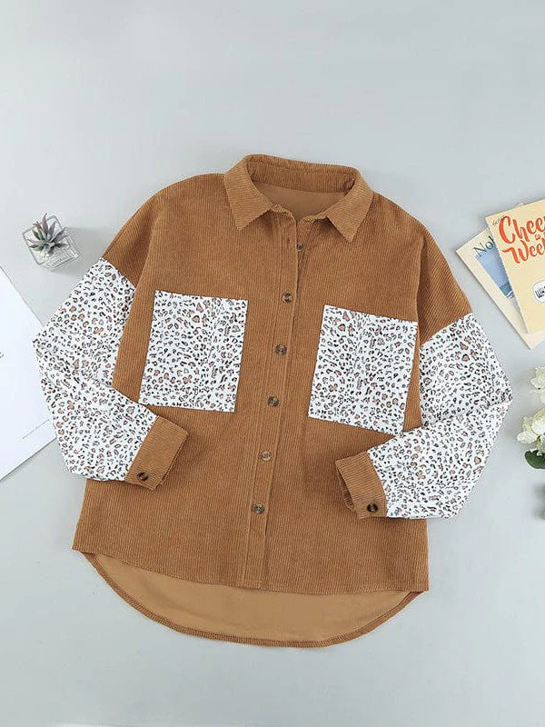 Leopard Print Corduroy Cardigan Jacket For Women With Pocket