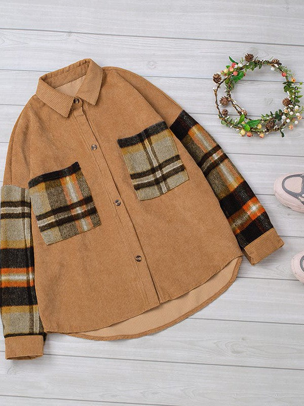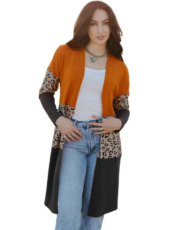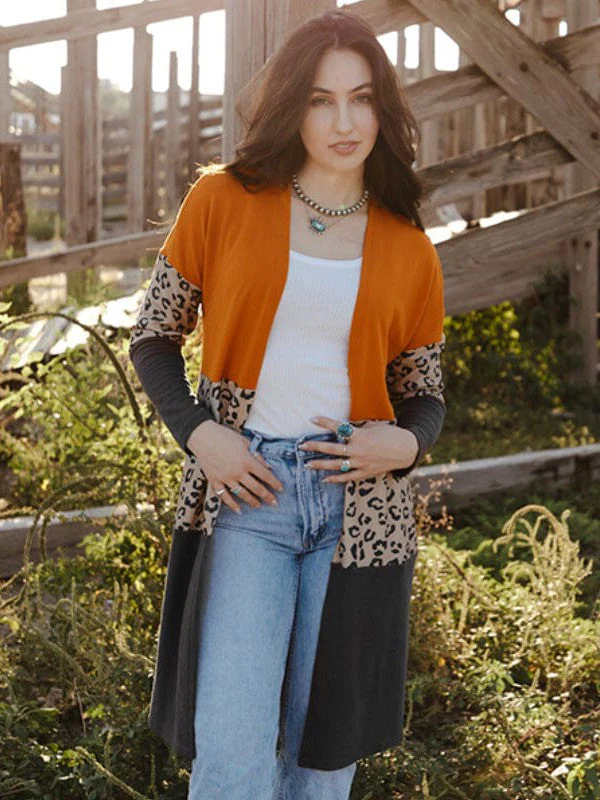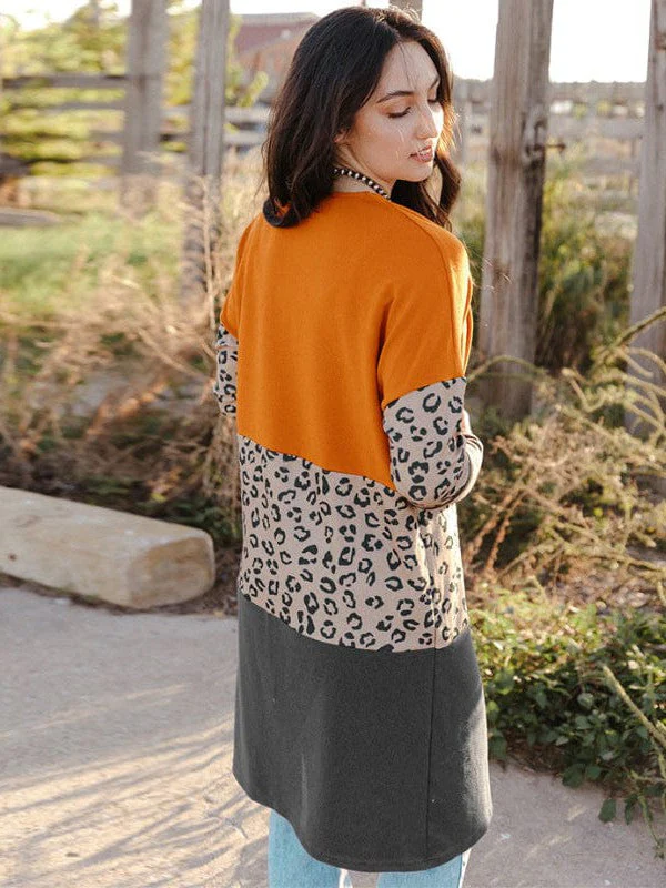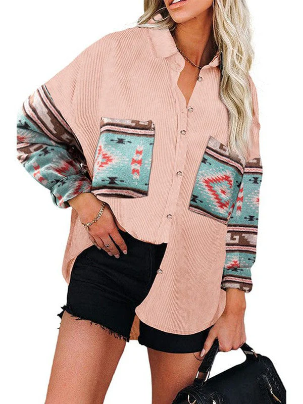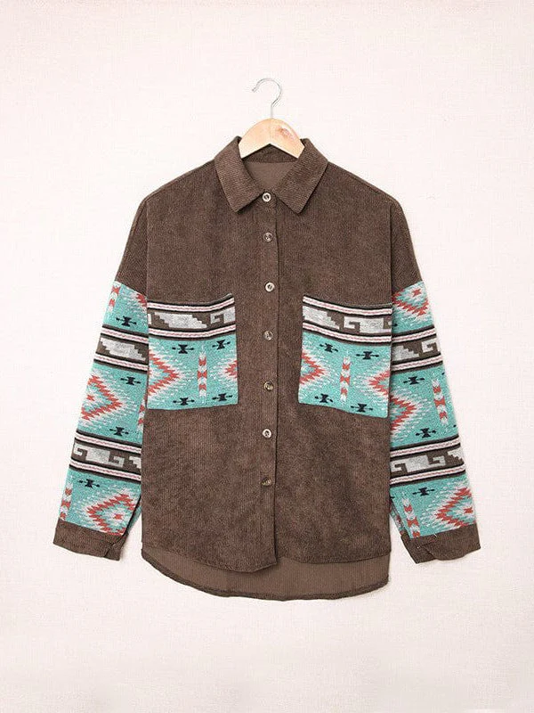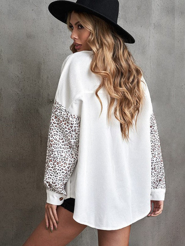 Leopard Print Corduroy Cardigan Jacket For Women With Pocket