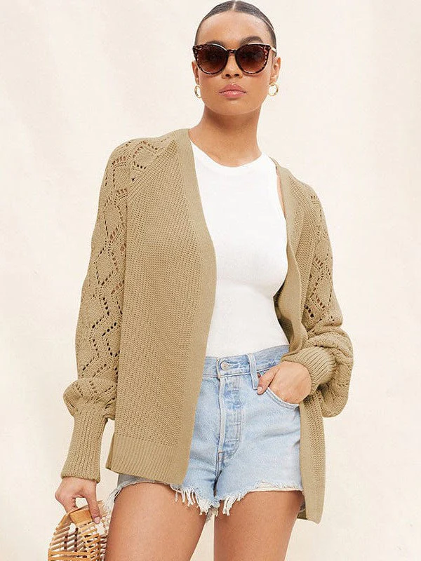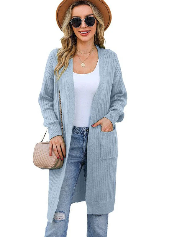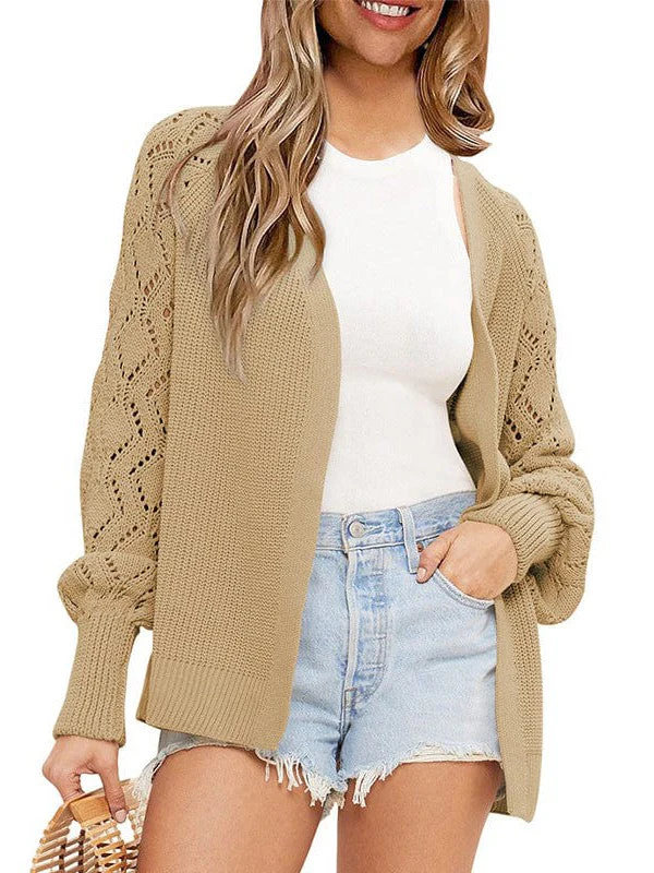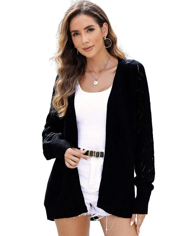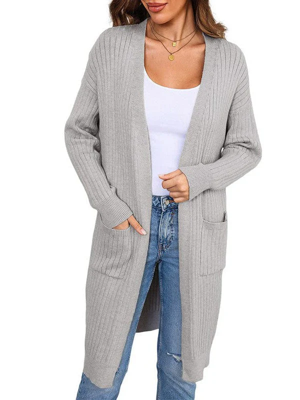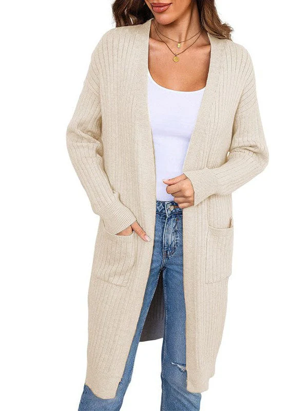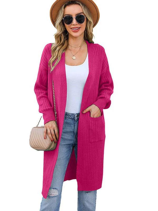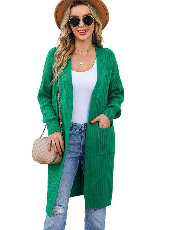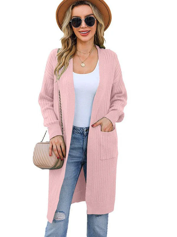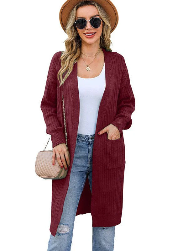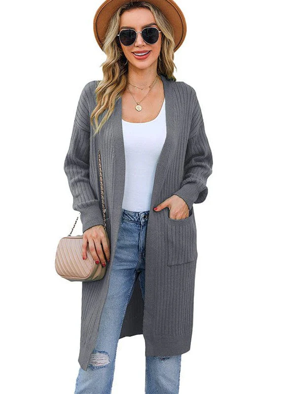 Stylish Solid Color Knitted Cardigan For Women With Mid-Length Design And Casual Style