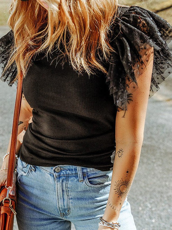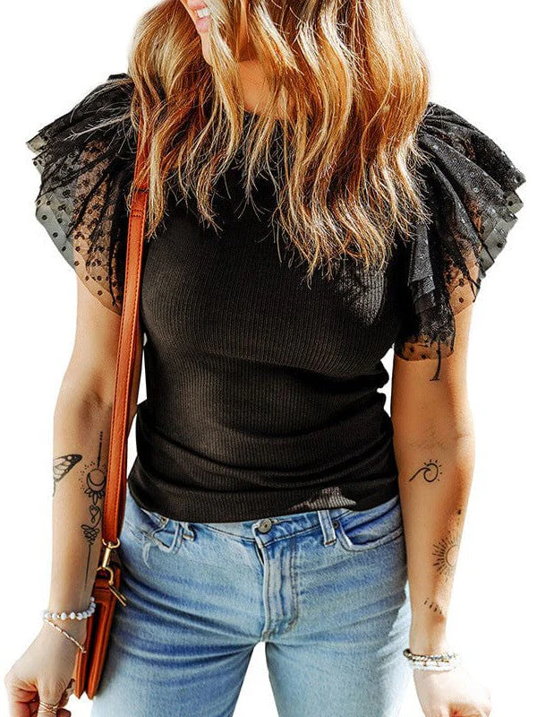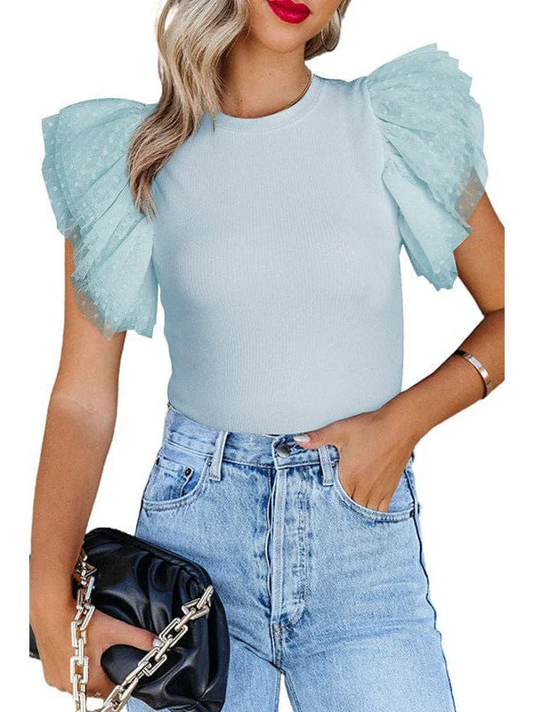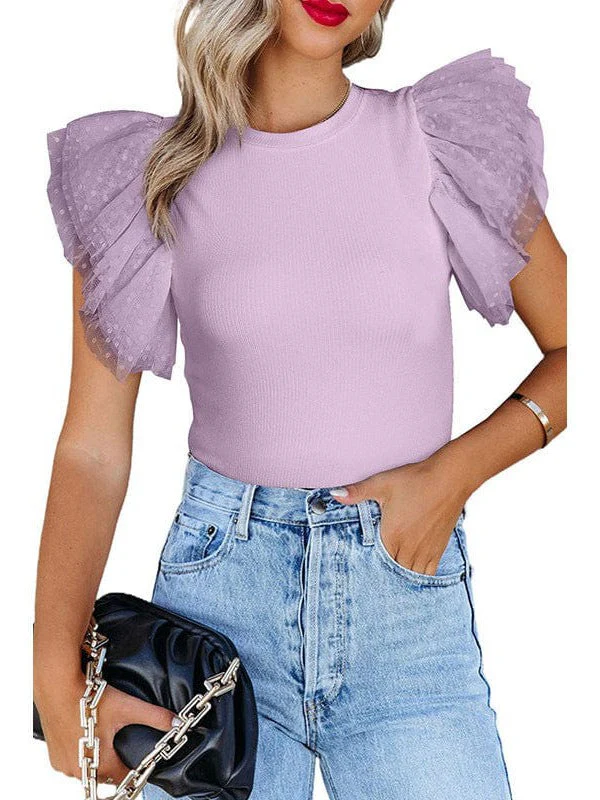 Women'S Fashion Ruffle Sleeve Pullover In Vibrant Solid Colors & Short Sleeves