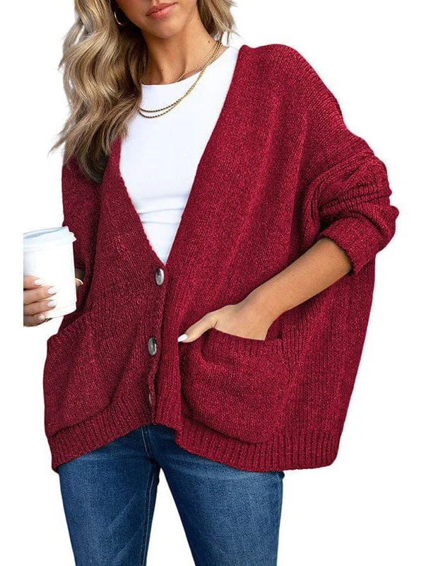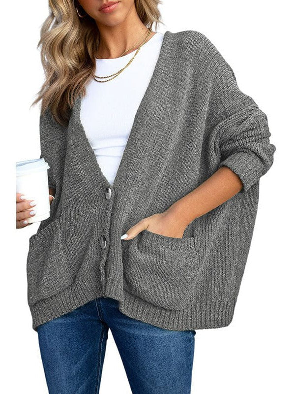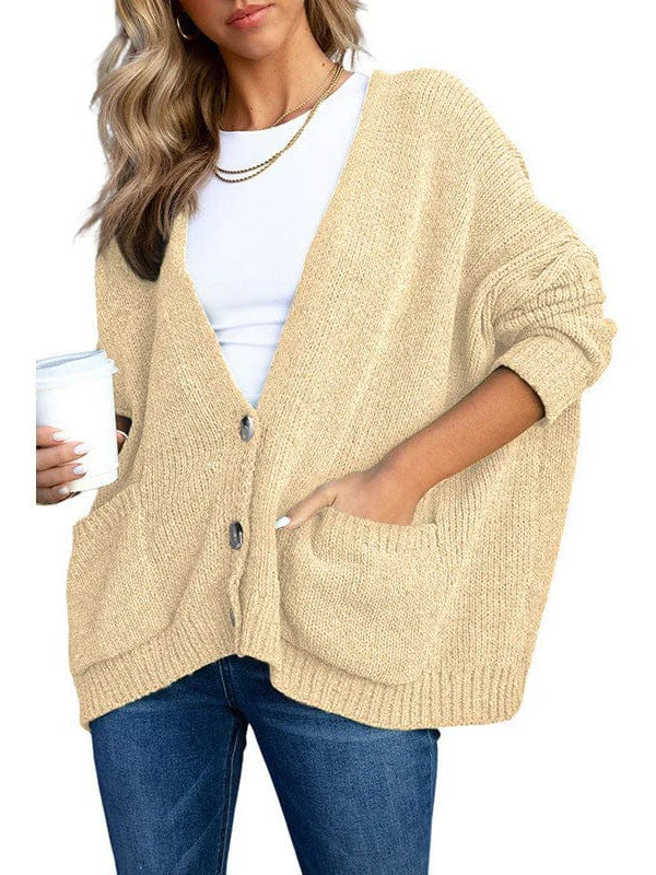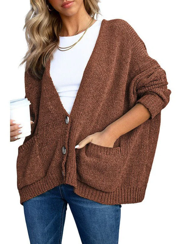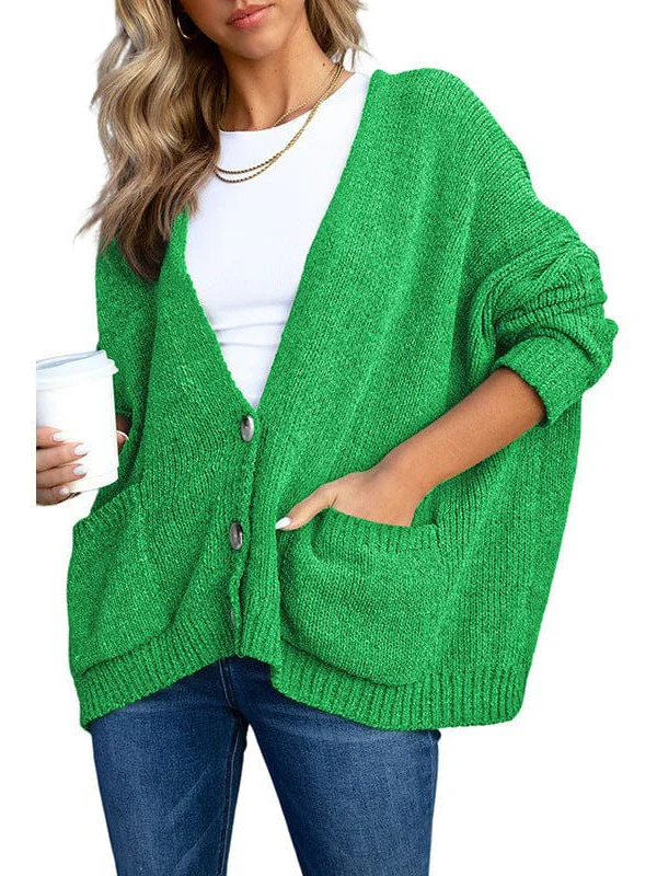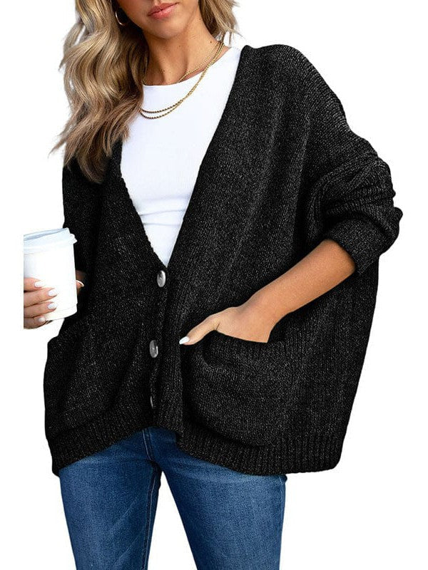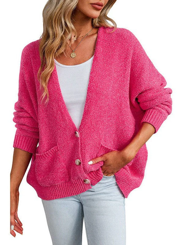 Ladies Knit Long Sleeve Cardigan And Sweater In Solid Color