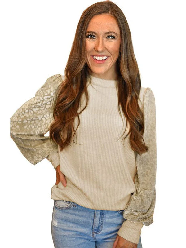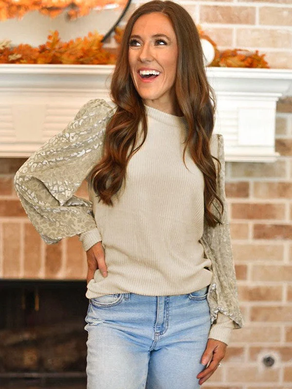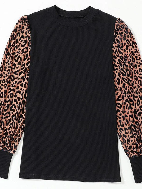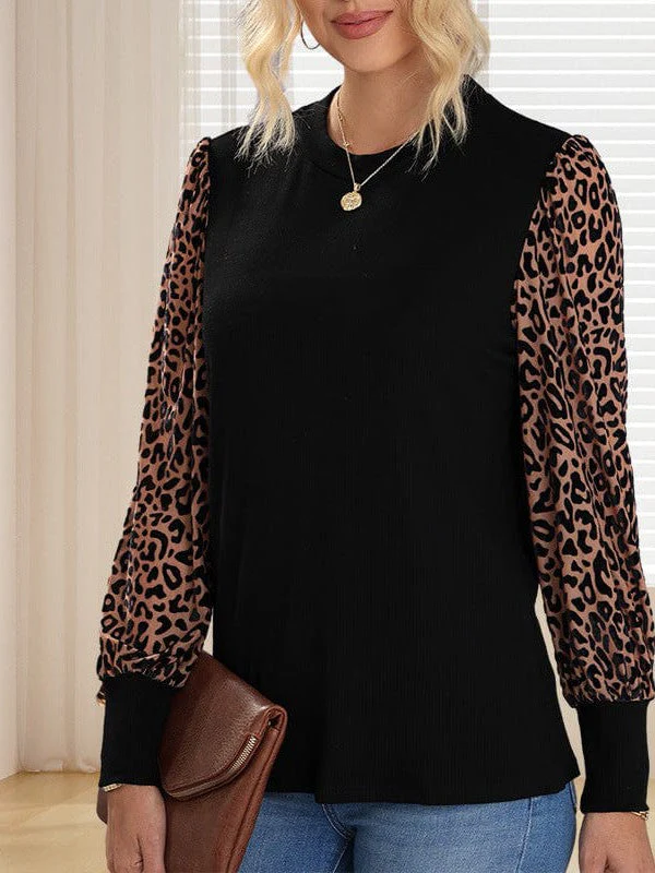 Women'S Loose Fit Leopard Print Knit Pullover With Round Neck And Casual Style Top