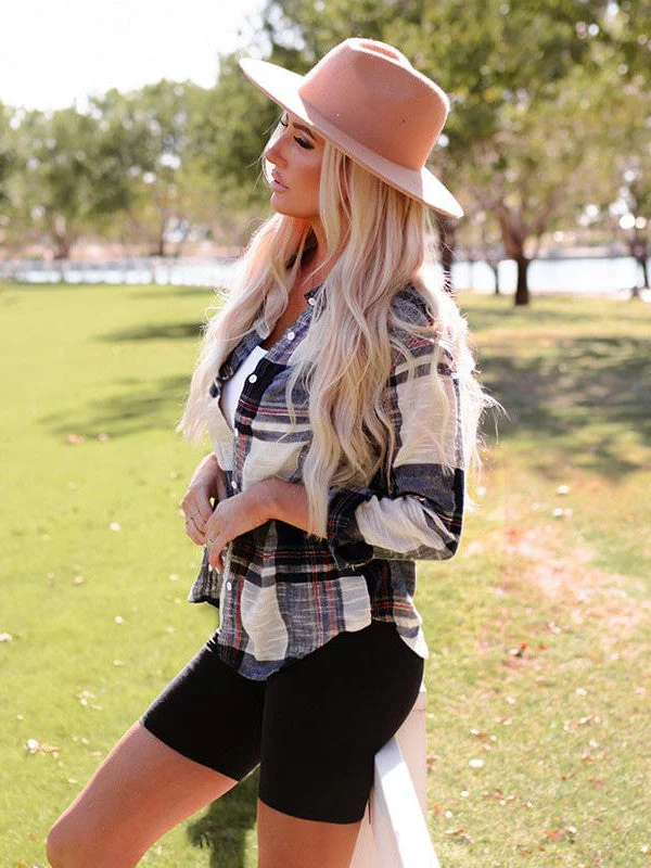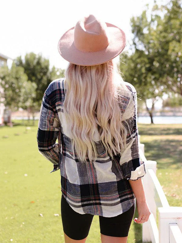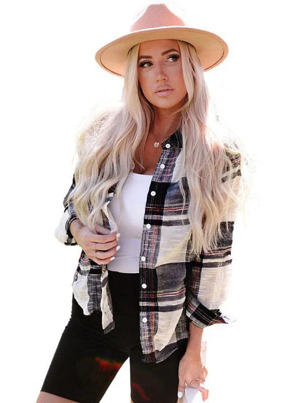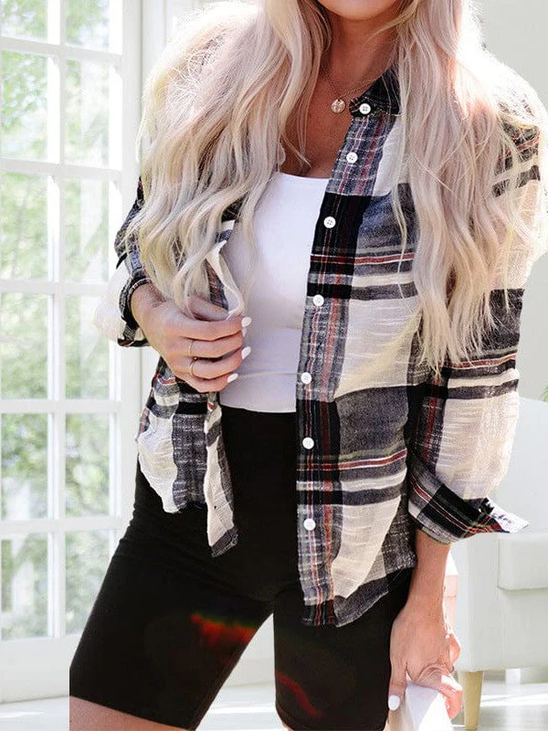 Women'S Loose Plaid Cardigan Shirt With Casual Pocket
