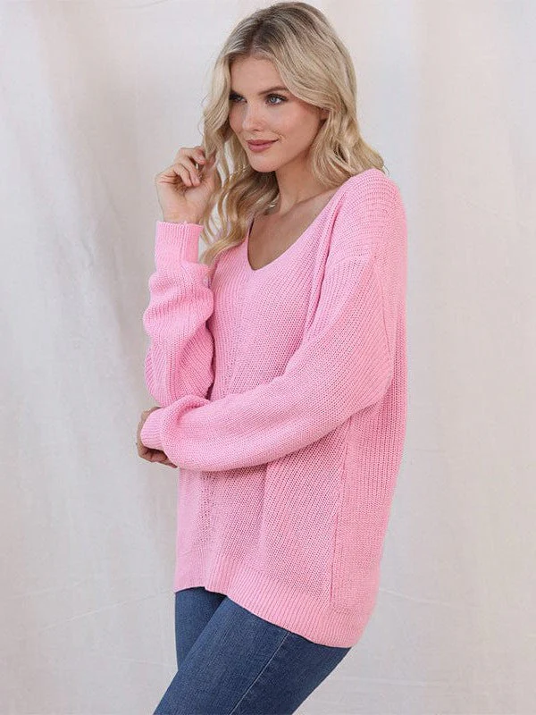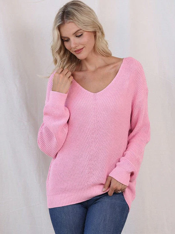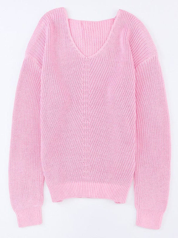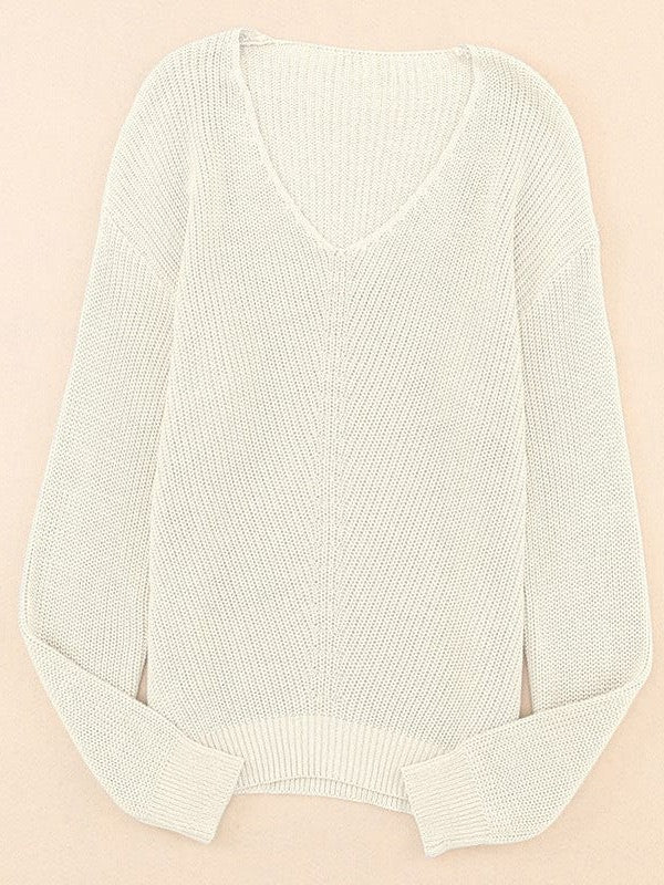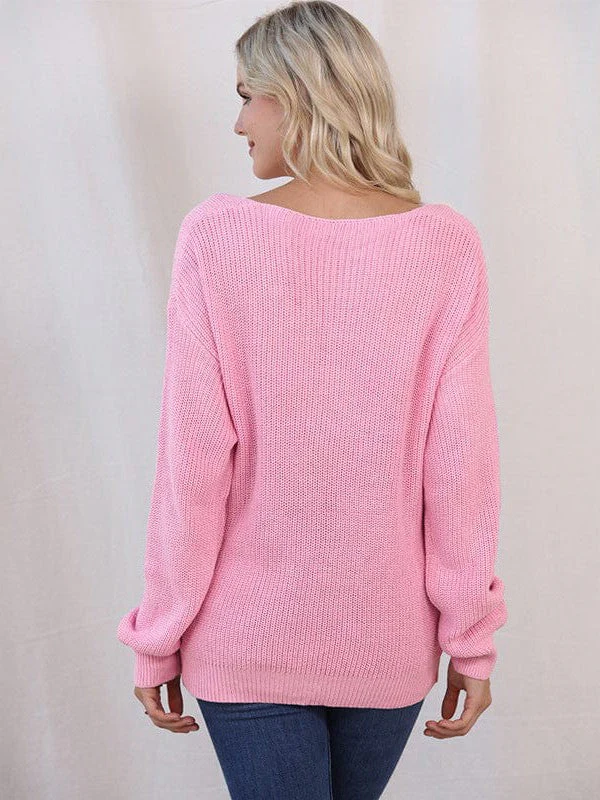 Fashionable Twist Long Sleeve Sweater For Women With Sexy Low V-Neck