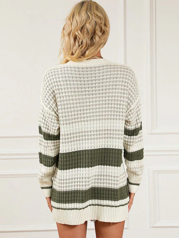 Women'S Striped Mid-Length Knit Cardigan In Contrast Colors
