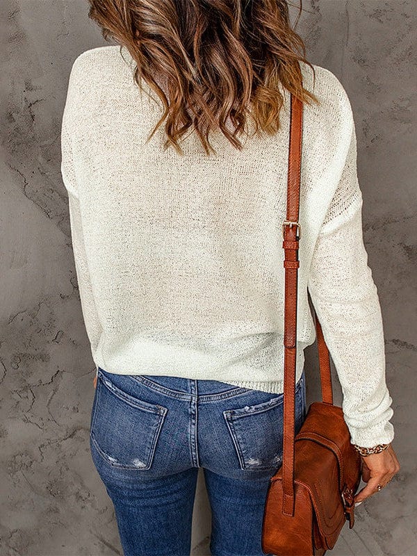 Slim Fit Threaded Sweater Pullover For Women In Simple Style