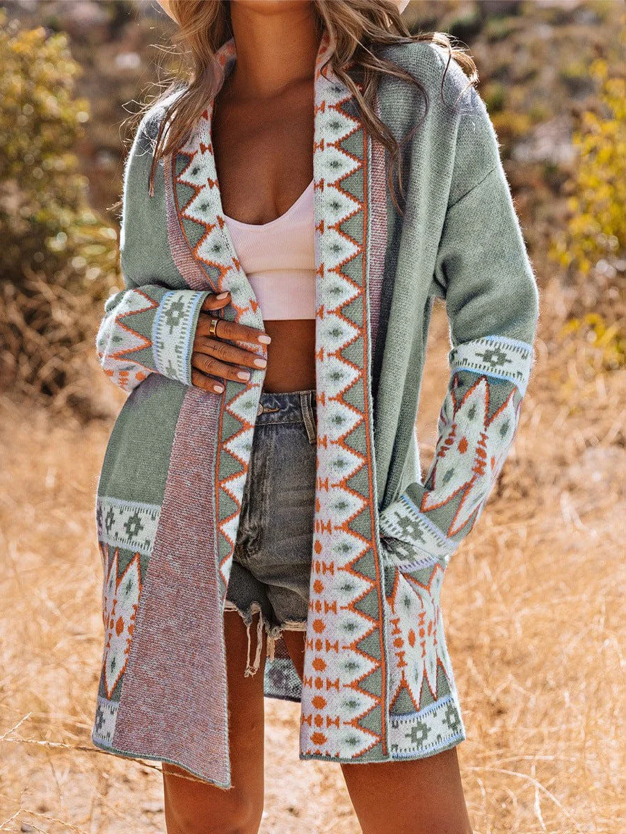 Ethnic Style Geometric Print Knit Cardigan For Street Chic Women