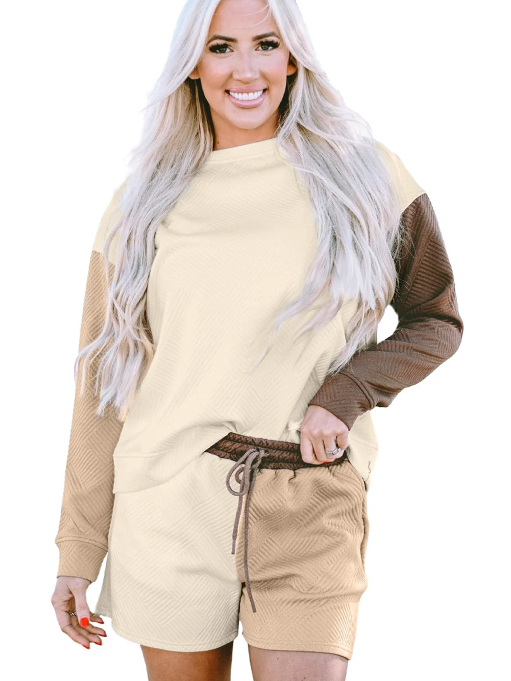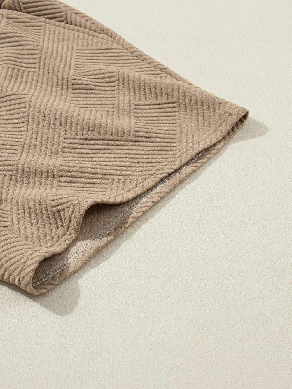 Cozy Khaki Sweater Set with Drawstring Shorts