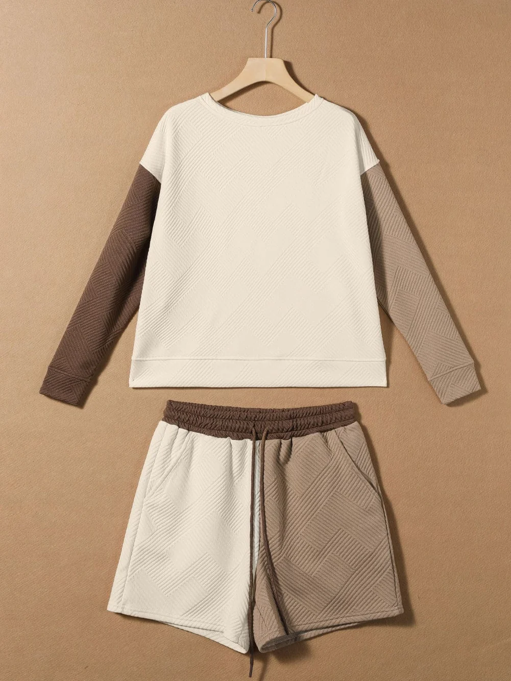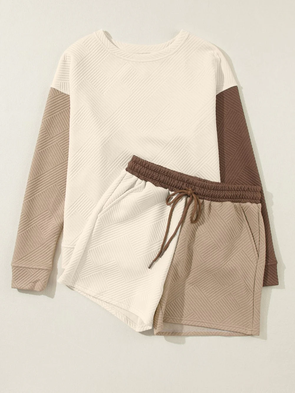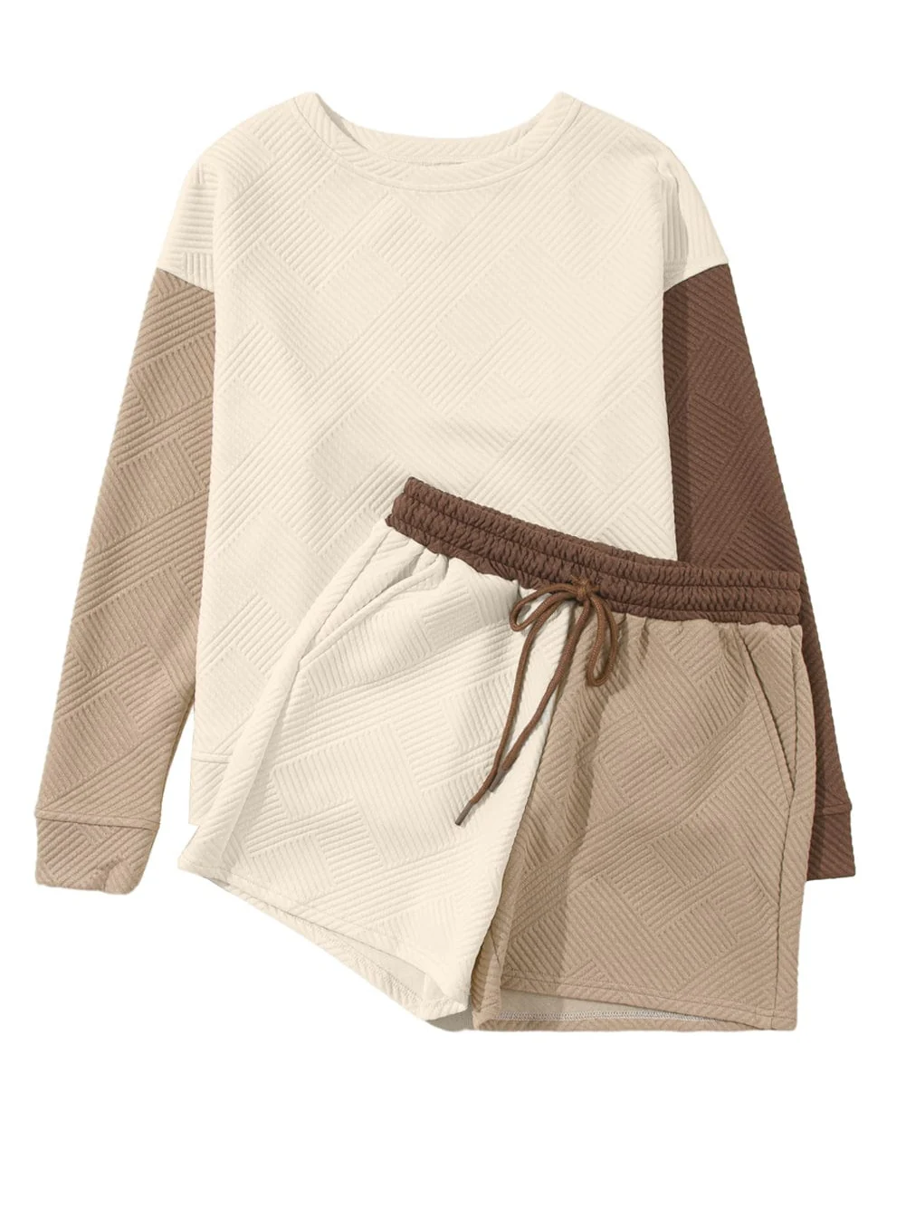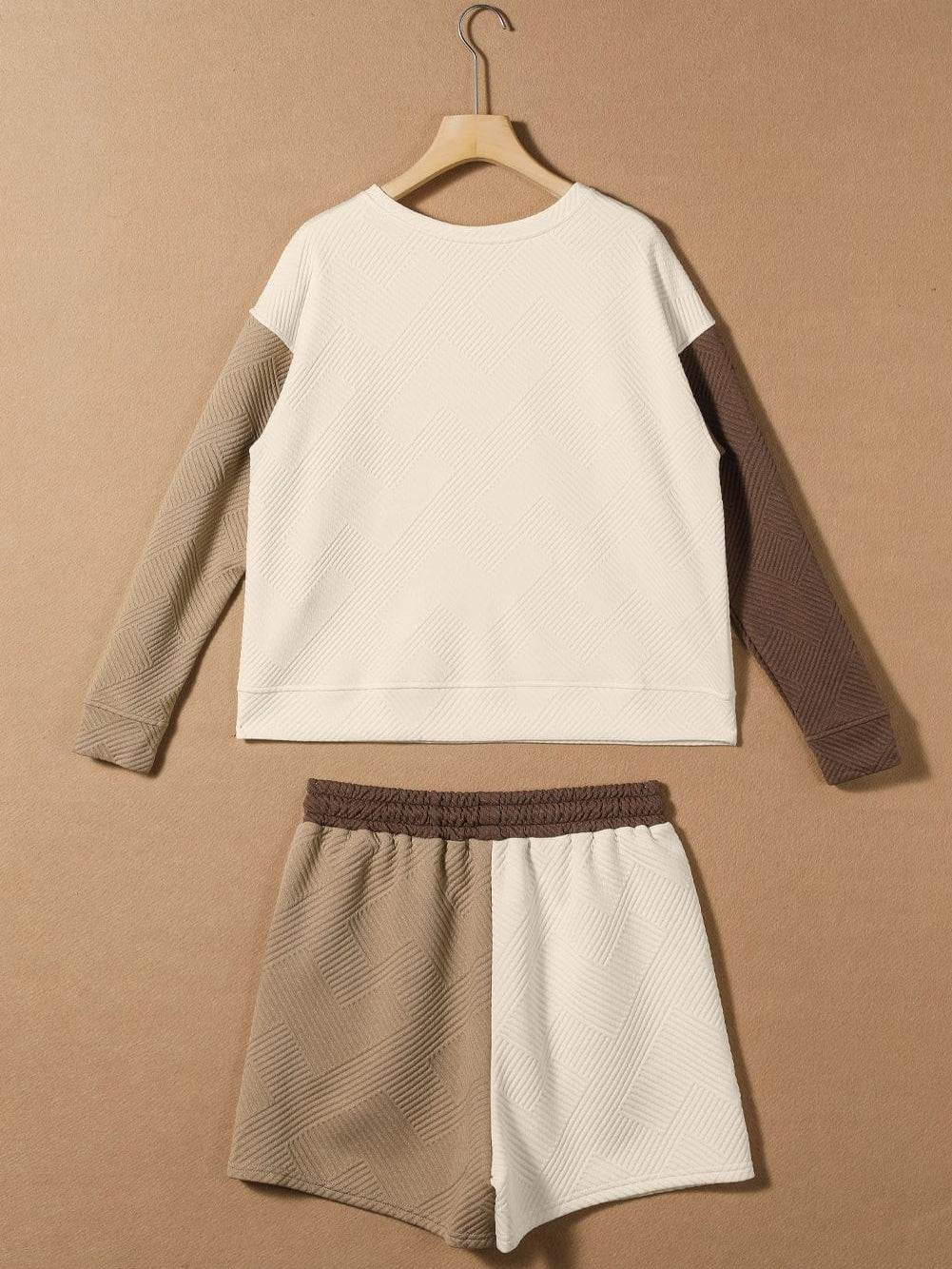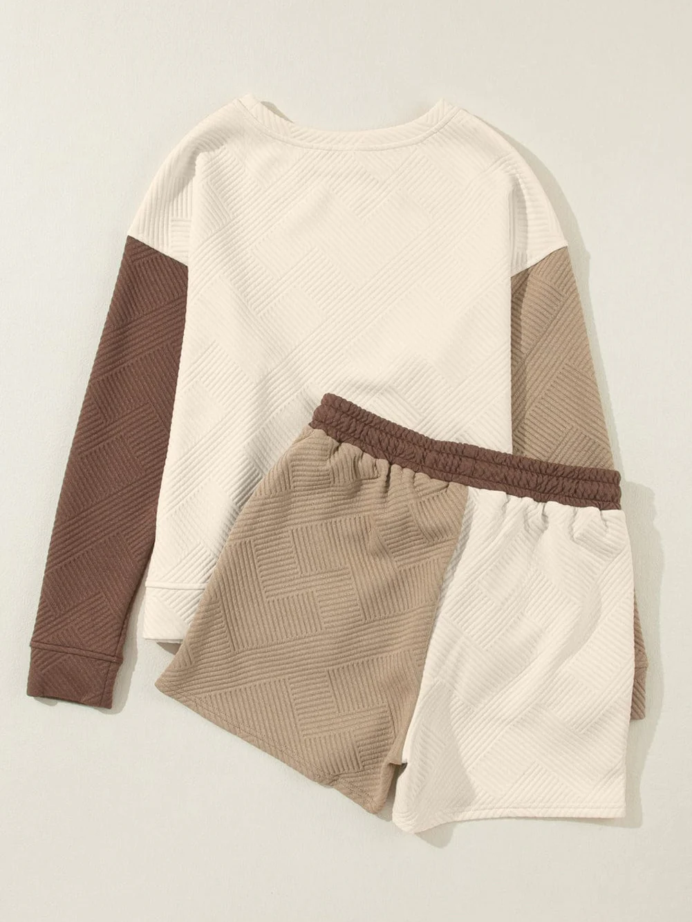 Vibrant Colorblock Textured Two-Piece Set with Long Sleeves