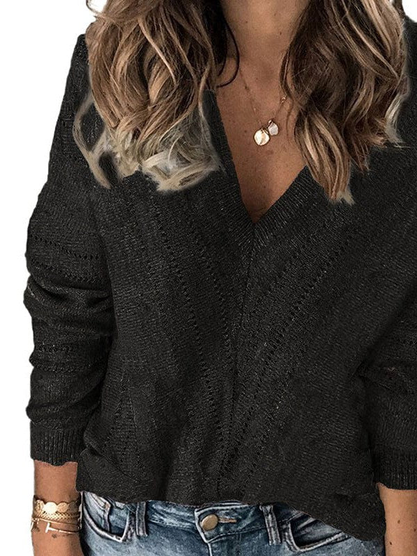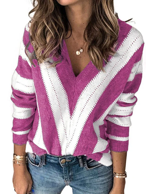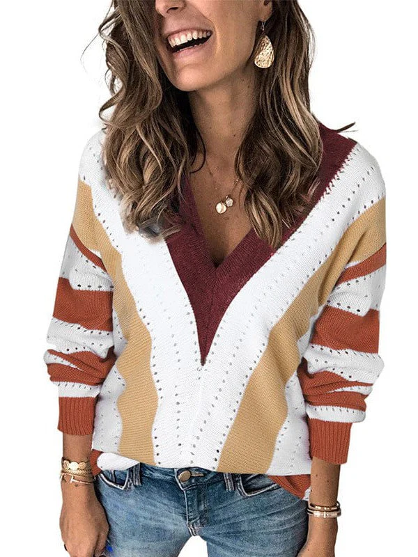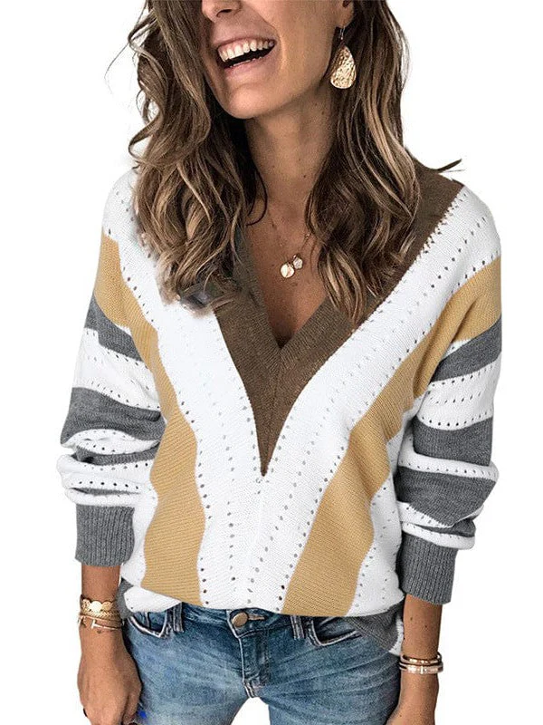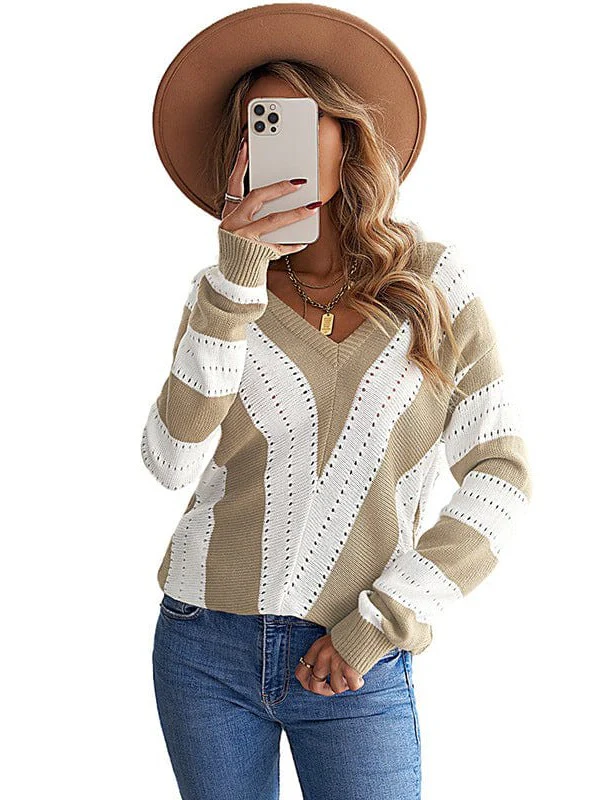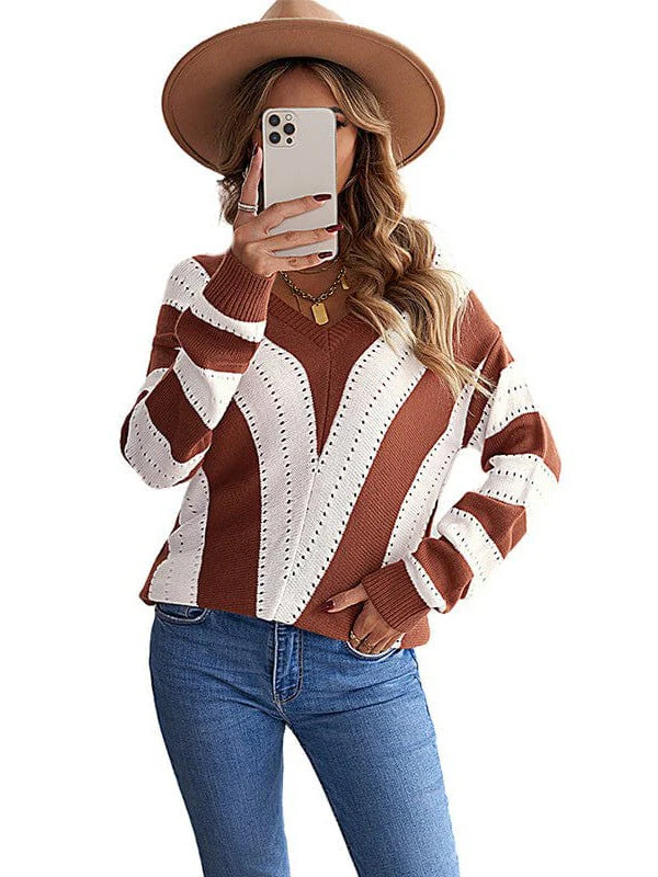 Striped Leopard Color Block Crochet Print Casual Long Sleeve Sweater