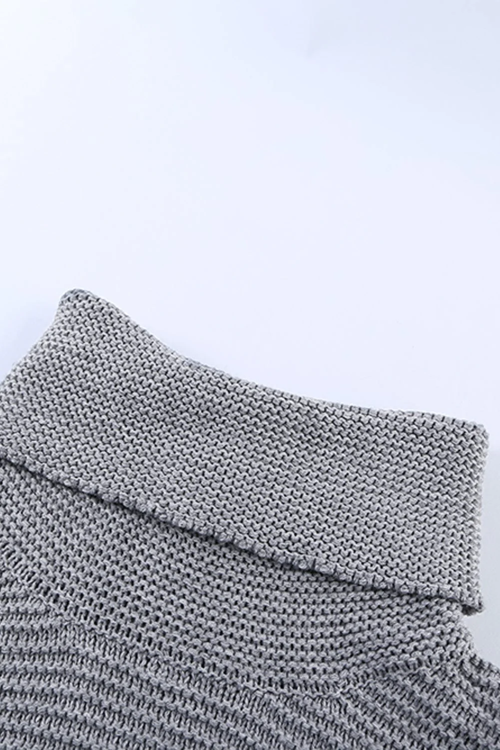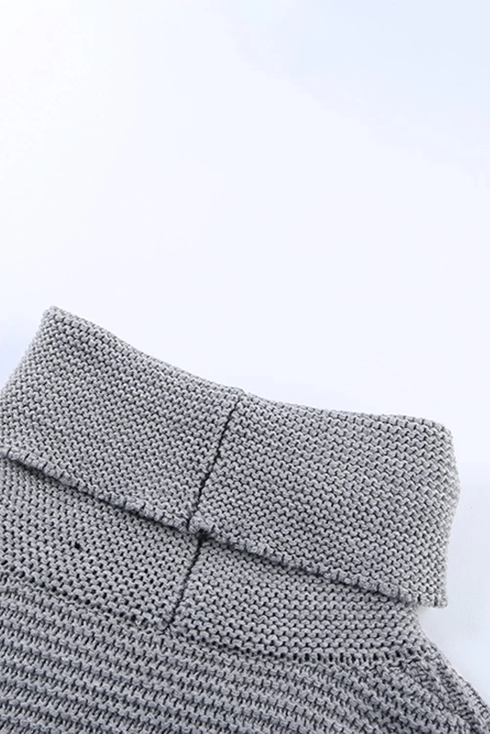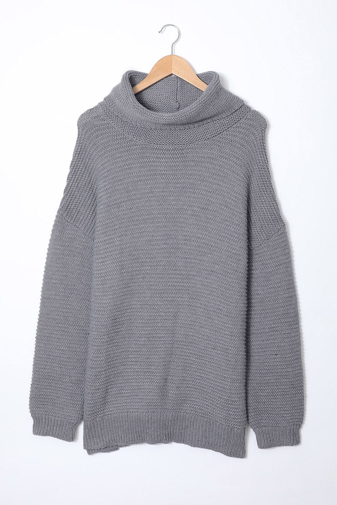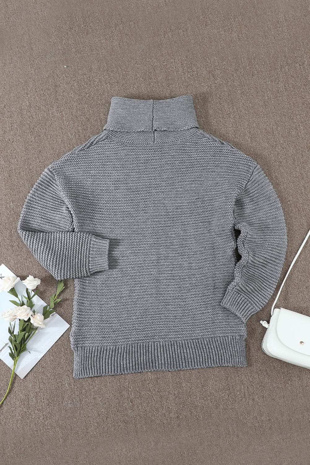 Casual Chunky Knit Mock Neck Long Sleeve Split Pullover Sweater