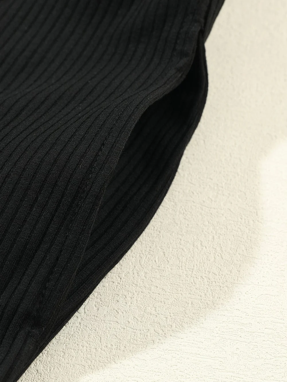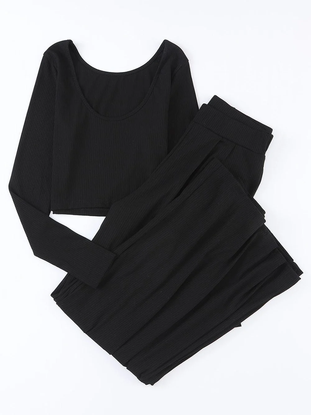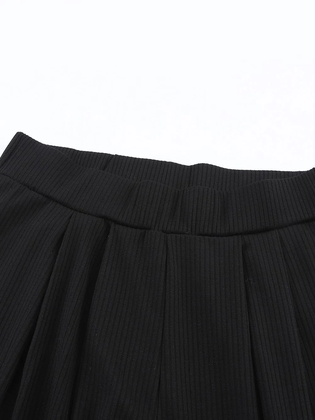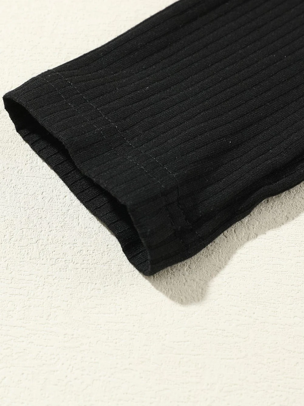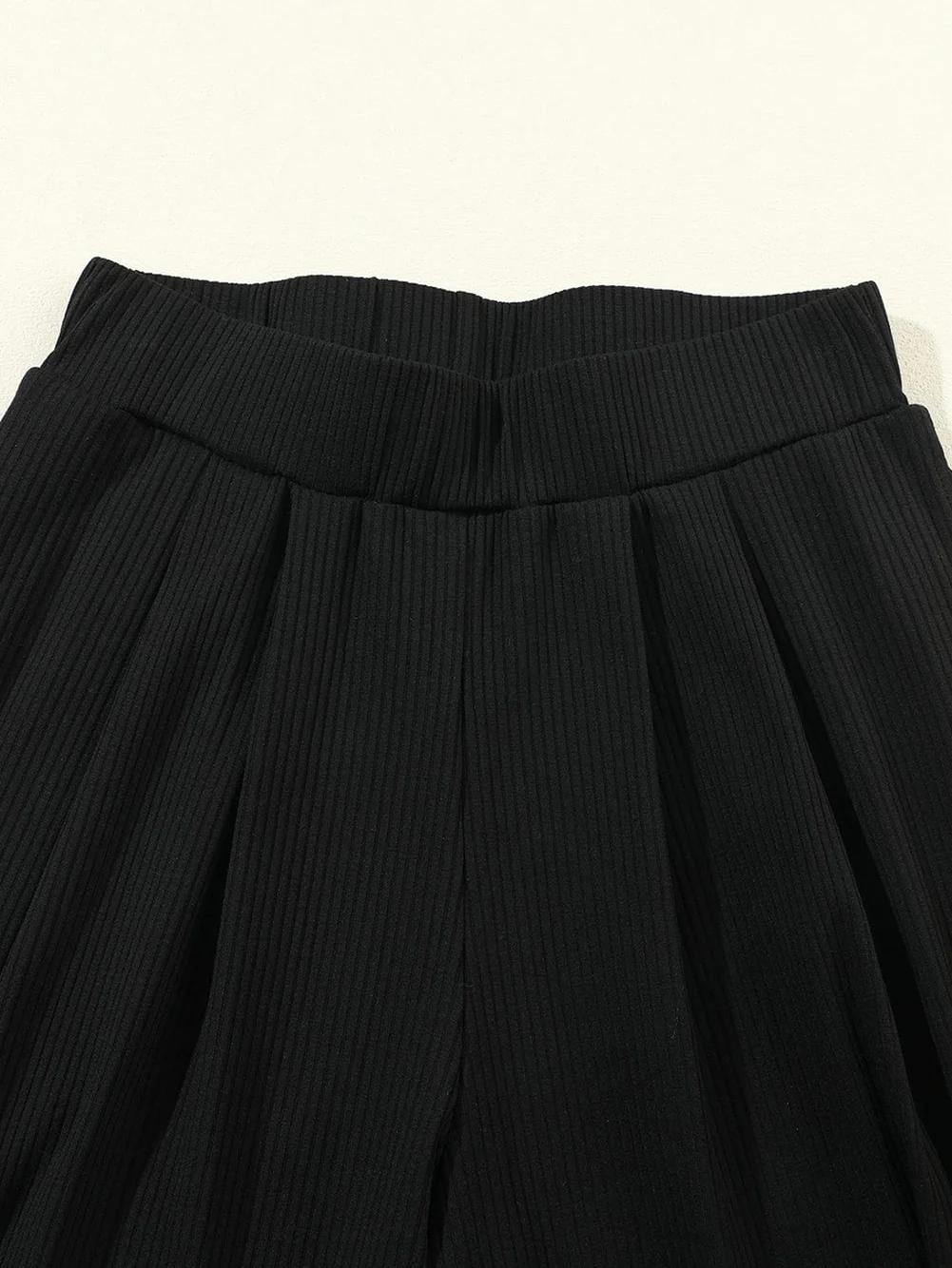 Black Ribbed Crop Top and High Waist Pants Set with Stylish Flare