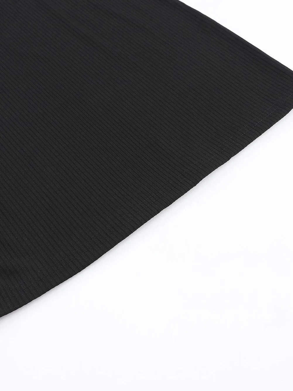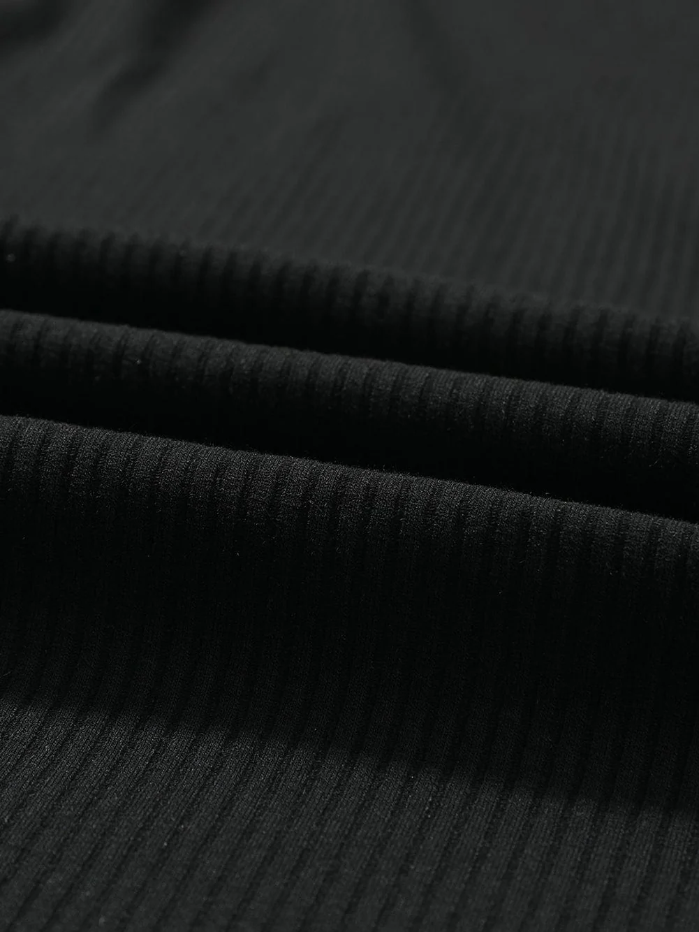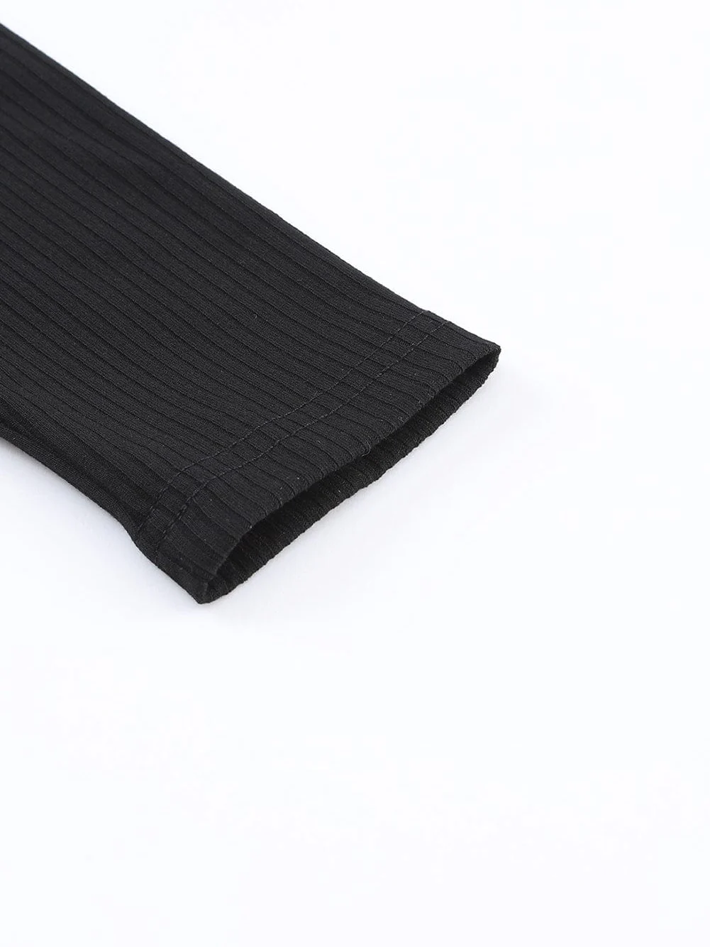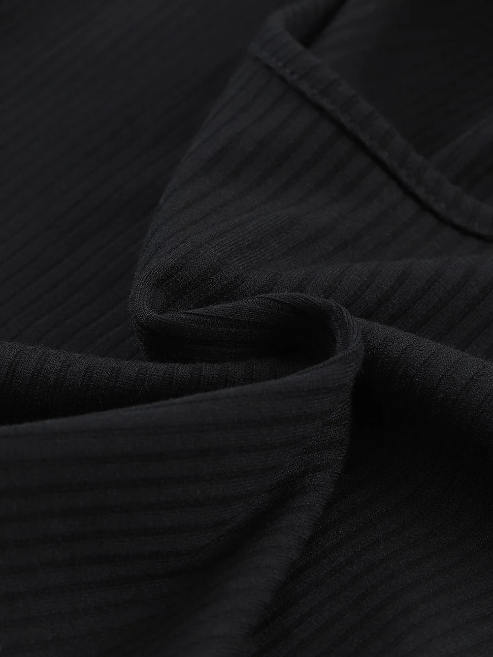Black Ribbed Crop Top and High Waist Pants Set with Stylish Flare