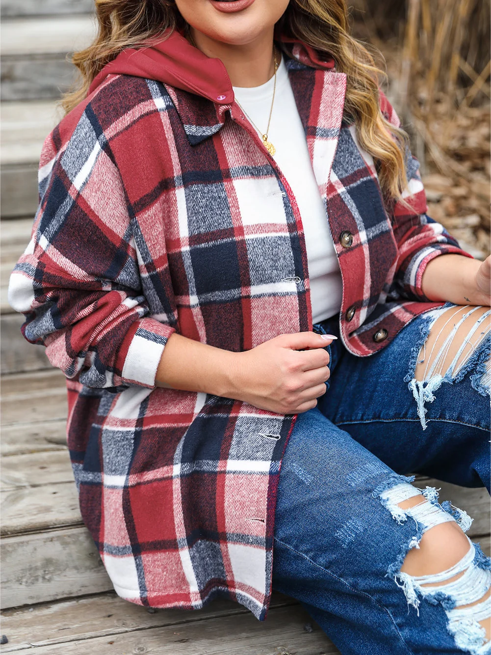 Trendy Plaid Long-Sleeved Shirt & Printed Cardigan Jacket Combo For Women